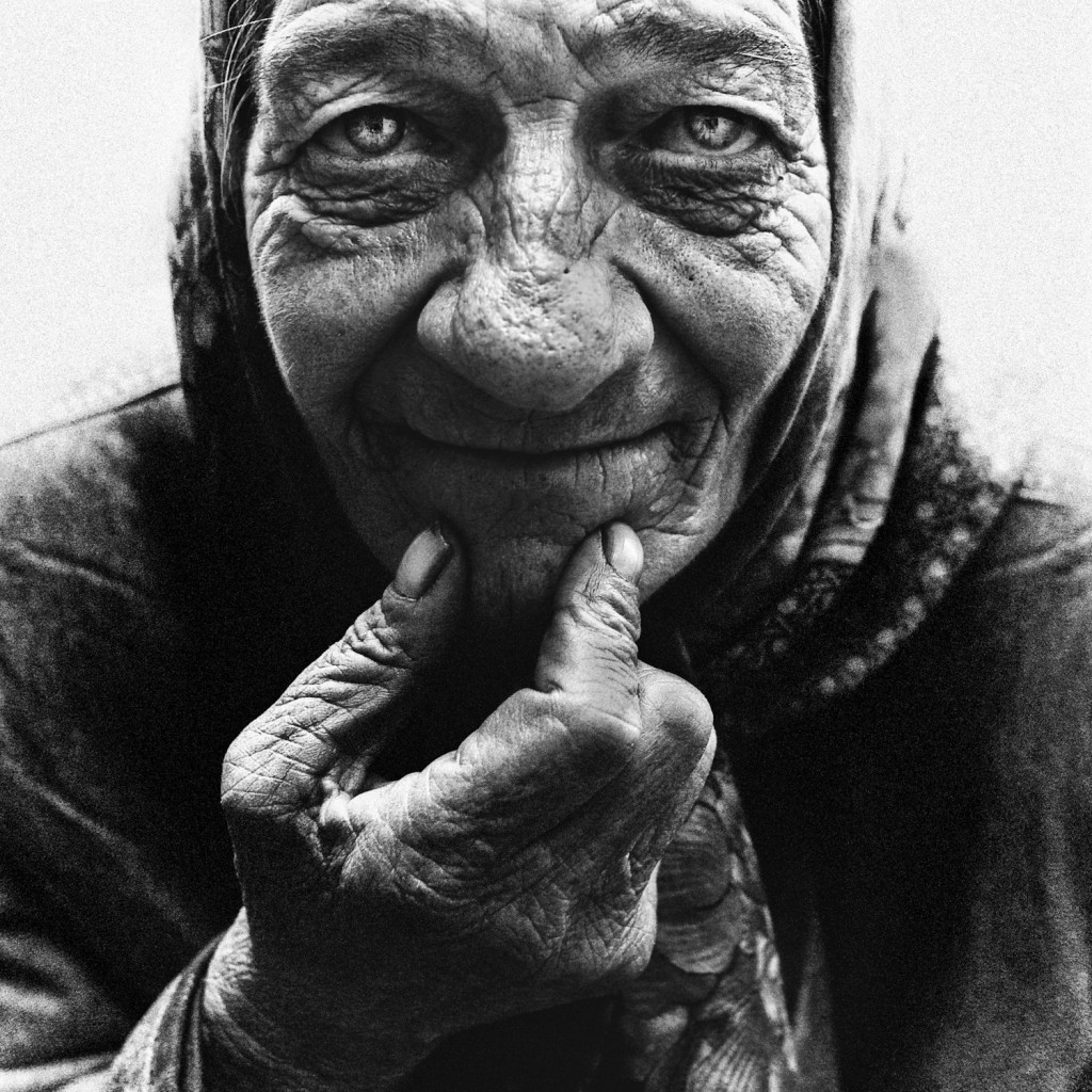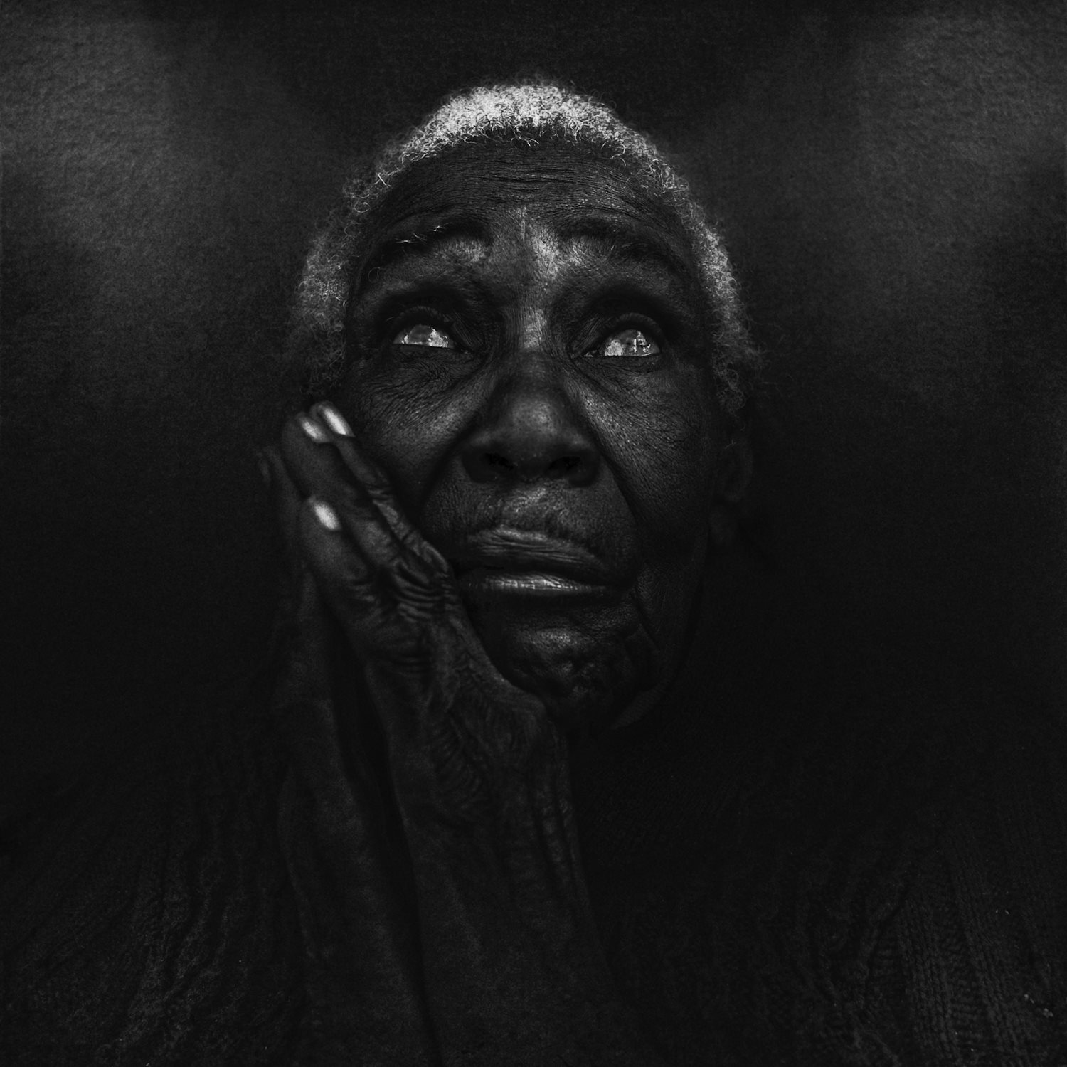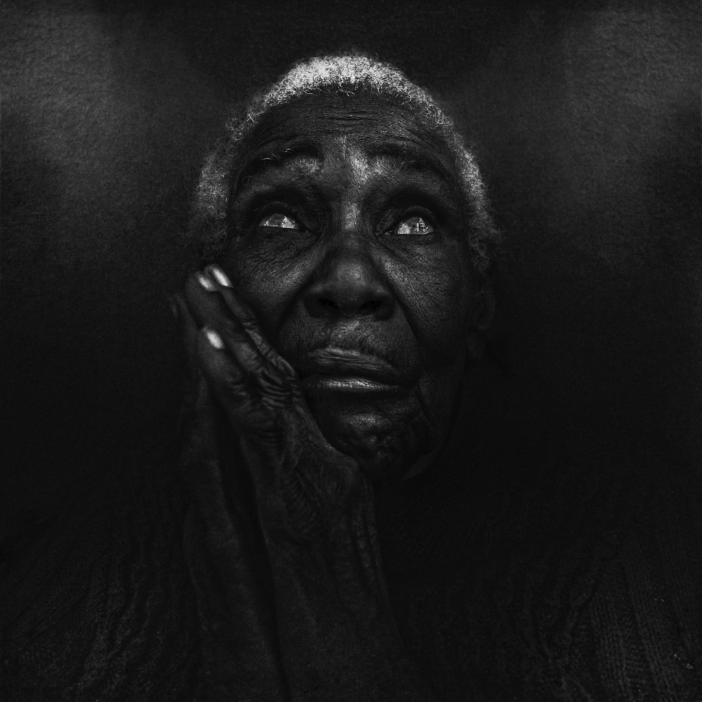 Lee Jeffries a pris le parti pris d’un traitement frontal et d’un cadrage resserré sur le visage ou sur les mains, insistant sur les reliefs du visage, travaillant les rides comme des sillons. Le traitement en noir et blanc ultra-contrasté magnifie chaque modèle.