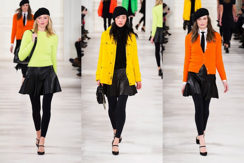 Chez Polo, le preppy côtoie le gypsy pour s’adapter à tous les styles. La college girl s’affiche en béret, cravate, jupe patineuse en cuir ou petite robe noire portée sur legging et se veut résolument urbaine, privilégiant les couleurs joyeuses.