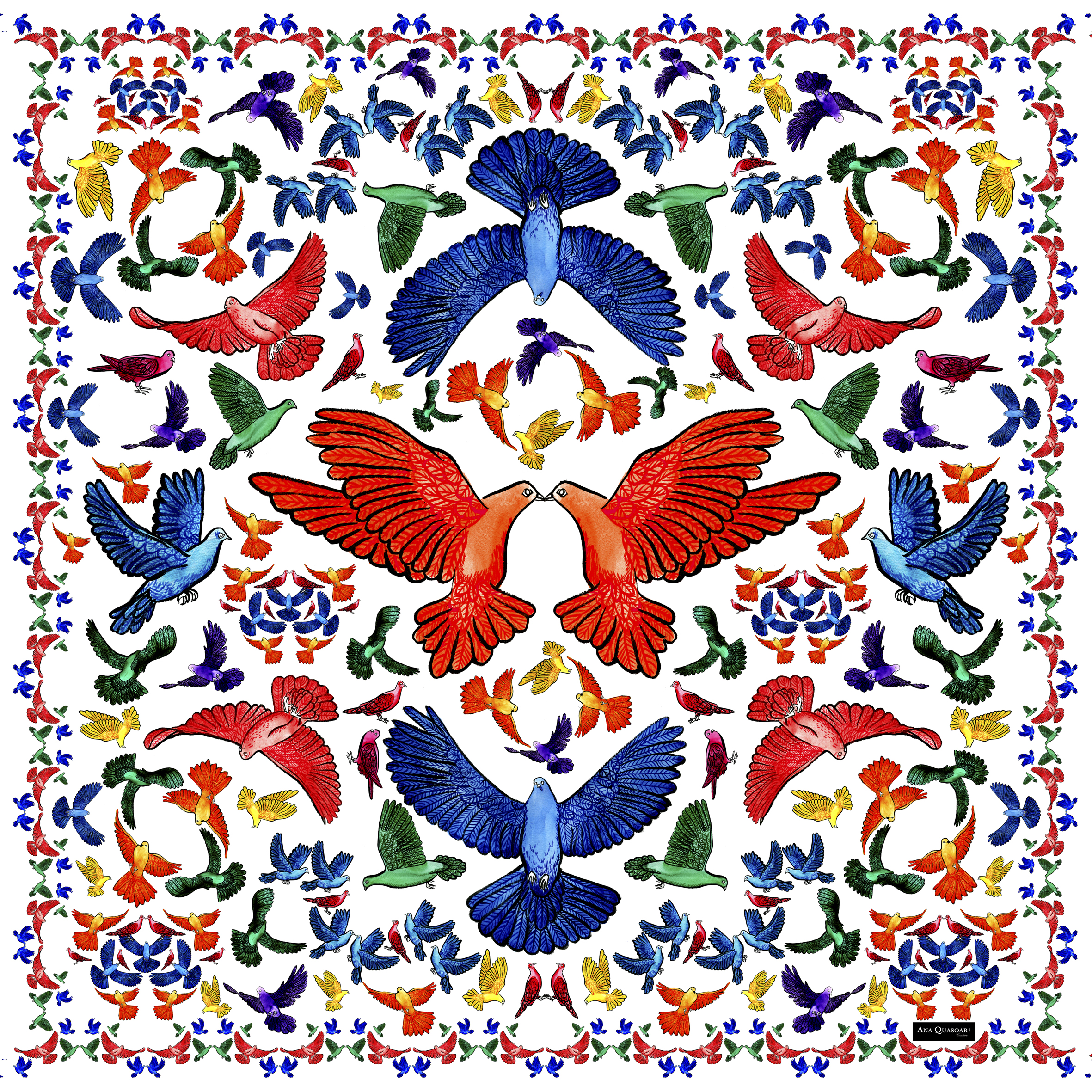 Dernièrement, Ana Quasoar a ajouté une corde à son arc avec une ligne de foulards et d’étoles en soie aux imprimés exclusifs à l’image de ses créations couture, 100% made in France avec des finitions main.