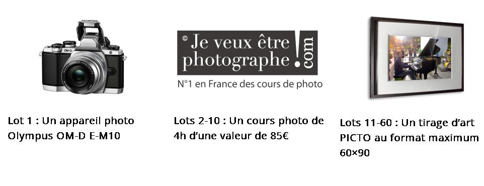 Et parce que la photographie est un art accessible à tous, l’expérience se partagera ensuite grâce à un concours. En effet, chaque jour, les participants aux sessions photos – comme les passants qui se promènent sur les Berges de Seine – peuvent participer à un concours photo qui leur permettra de gagner un appareil-photo Olympus OM-D E-M10, des cours de photos JeVeuxEtrePhotographe ou des tirages d’art par Picto.