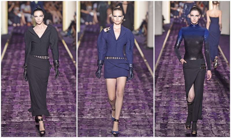 Robes longues fendues sur jambes interminables, transparences et décolletés, découpes et asymétrie, les créations de Donatella Versace mettent en avant les propres codes de la maison tout en proposant une couture luxueuse et moderne.