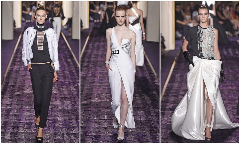 « Atelier Versace, c’est de la couture authentique. J’ai voulu mettre à l’honneur la construction et la déconstruction, la provocation étant d’éliminer du tissu pour accentuer la modernité de la Couture » Donatella Versace