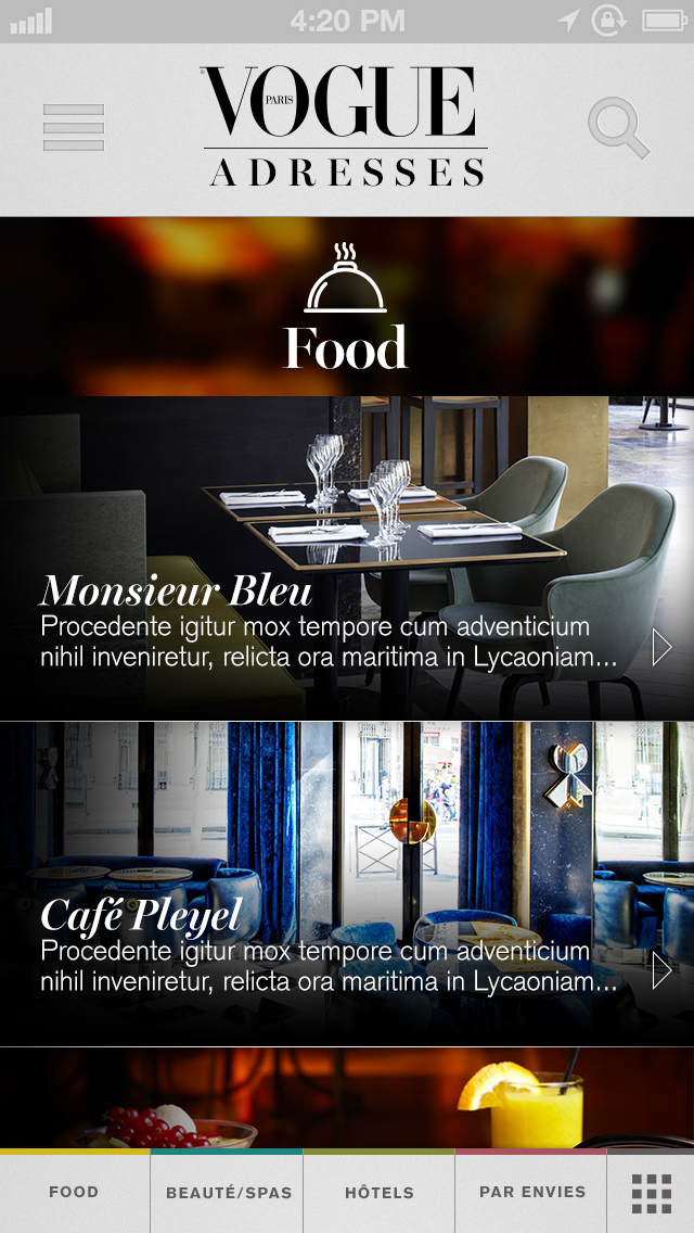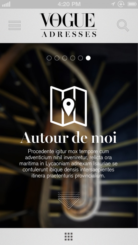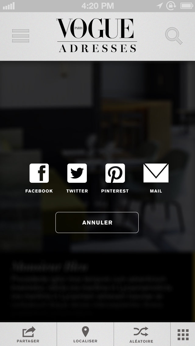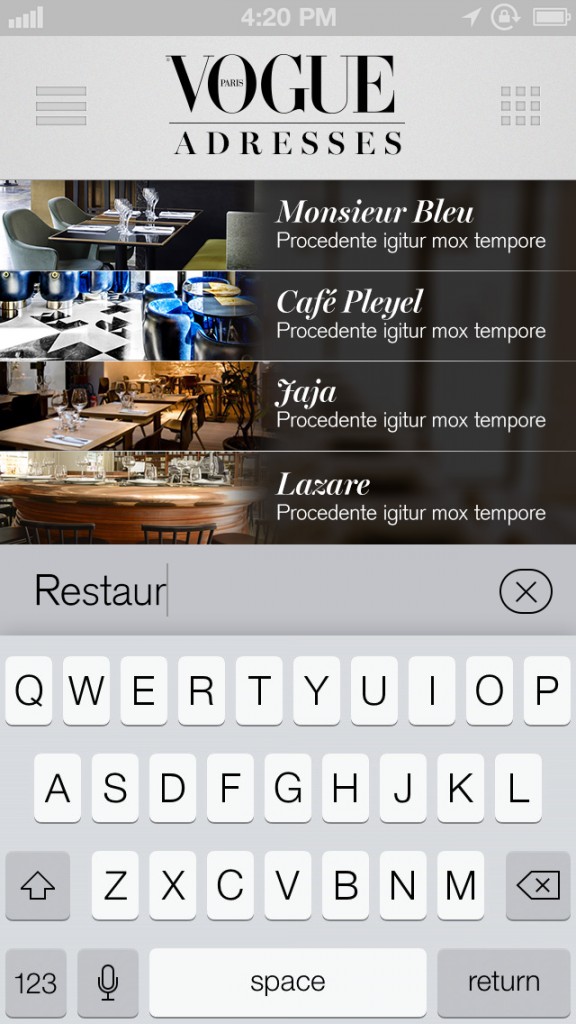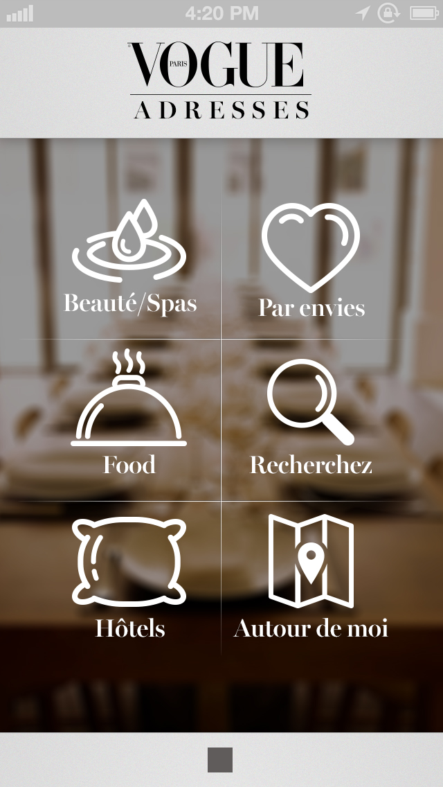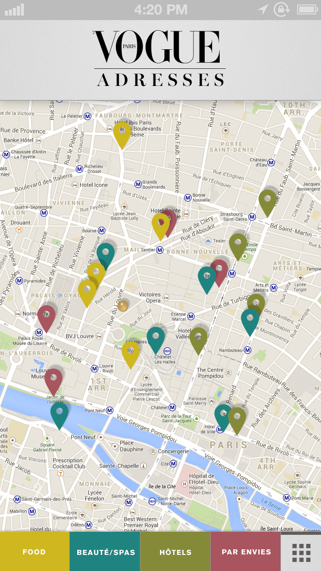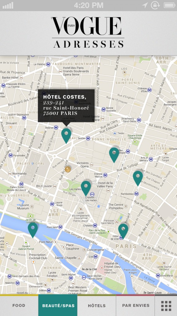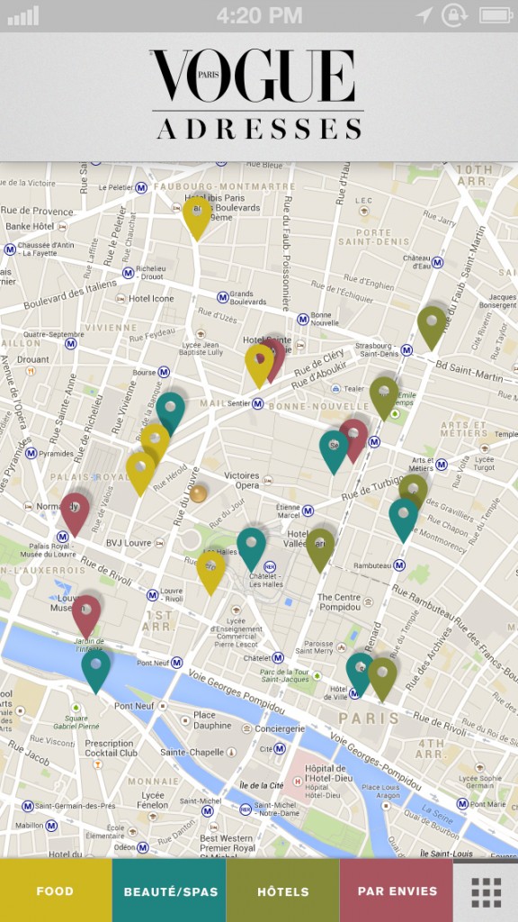 Vogue Adresses, le compagnon indispensable pour découvrir les spots les plus en vogue de la capitale. Dommage qu’il n’existe que sur Iphone.