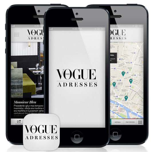 Comme un écho à sa rubrique Carnet d’adresses de stars, Vogue Paris prolonge l’expérience avec Vogue Adresses, la nouvelle application iPhone gratuite du magazine compilant les adresses de la rédaction aux quatre coins de Paris.