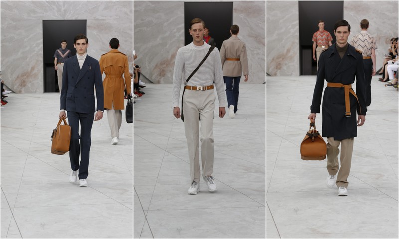Baroudeur émérite, l’homme Louis Vuitton 2015 n’en reste pourtant pas moins un homme d’affaires averti. Et c’est en costume croisé ivoire ou bleu, en blazer parfaitement coupé et en trench de cuir qu’il décide de parcourir le monde dans une élégance aux accents 70, son sac de voyage en cuir de cerf, rehaussé de boucles à la main.
