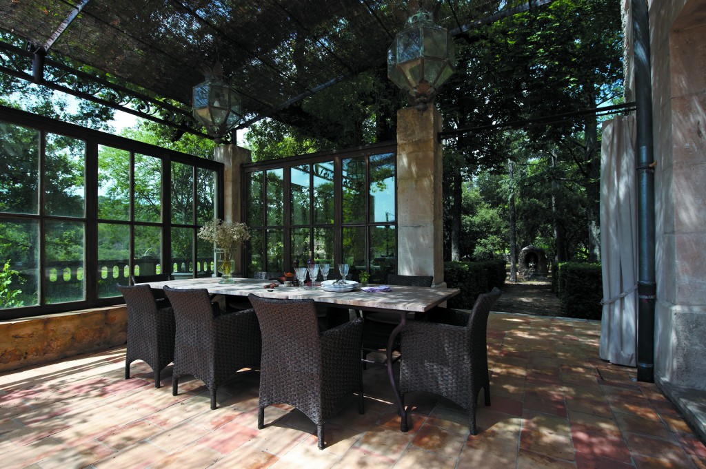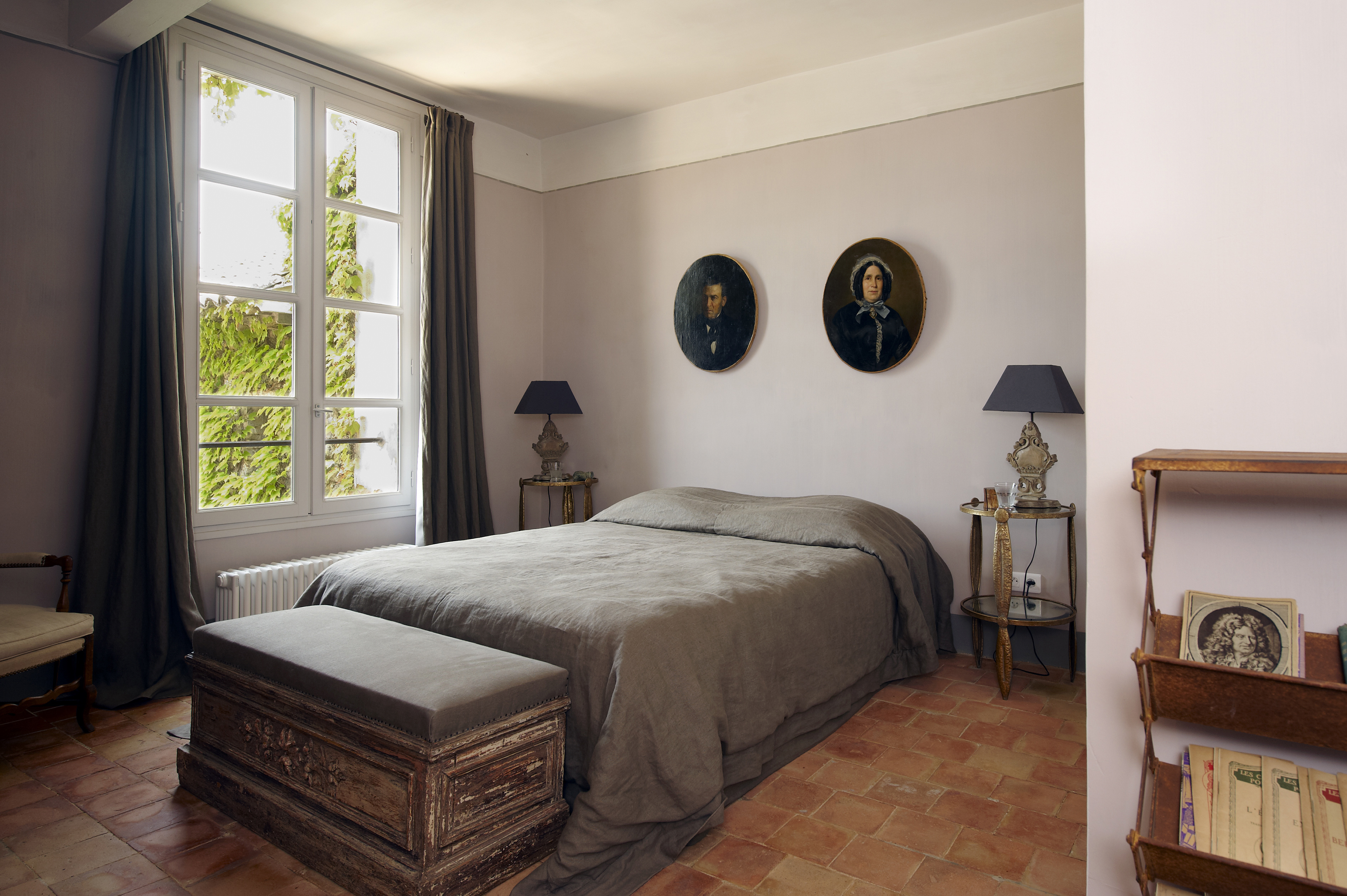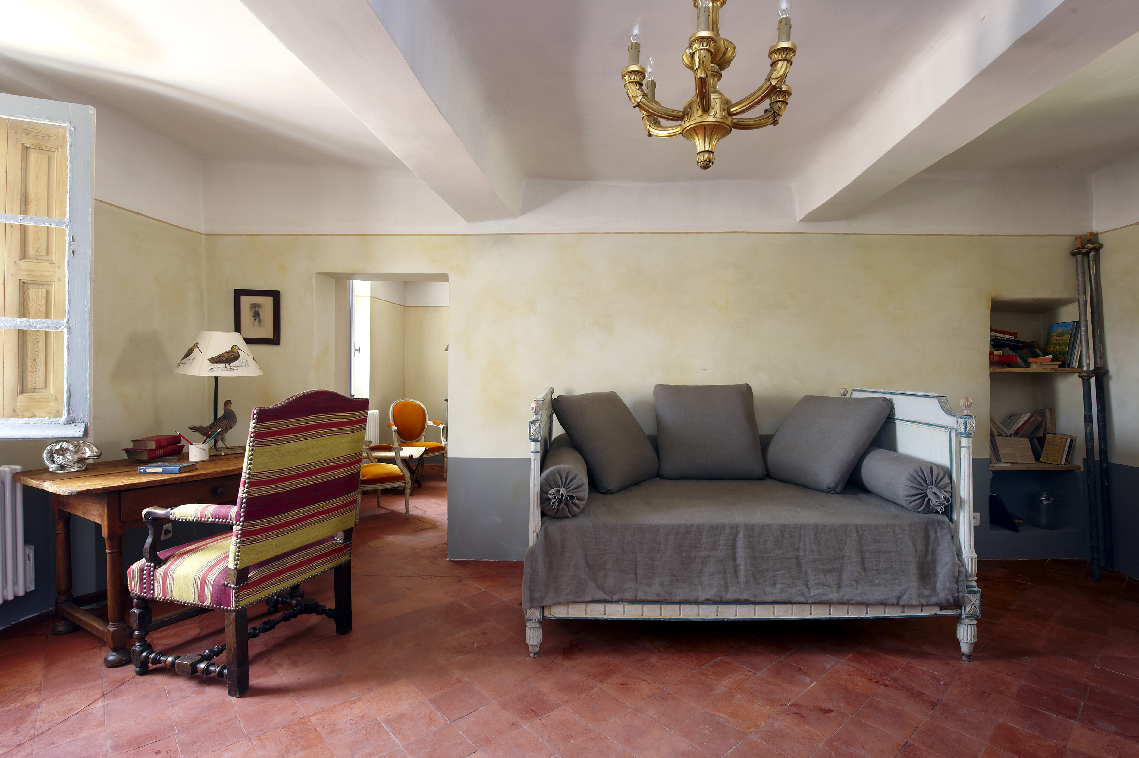 Poutres apparentes, tomette et meubles d’époque patinés composent le décor provençal imaginé par Jean-Louis Fages.