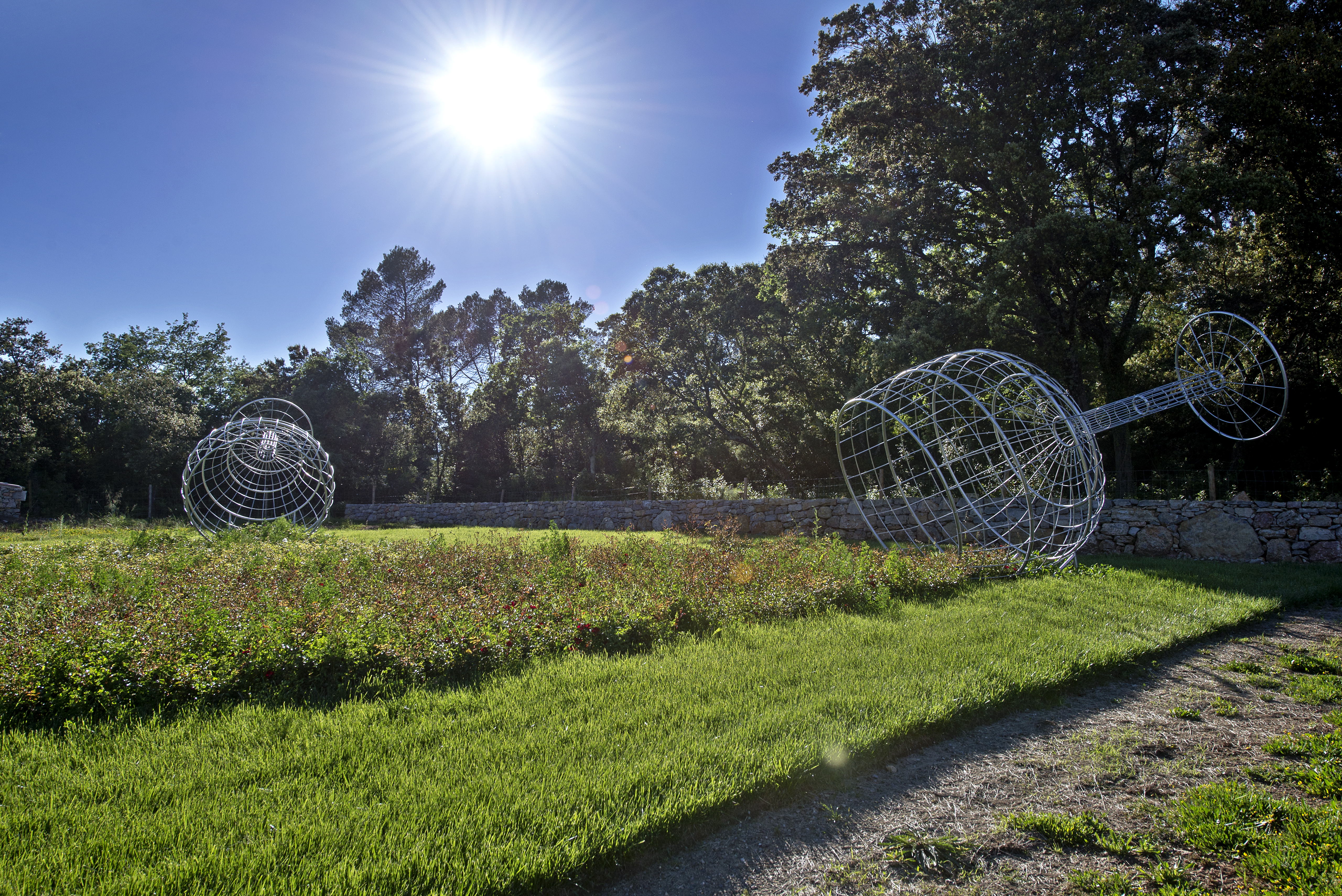 Le domaine recèle ainsi un jardin jalonné d’une cinquantaine de sculptures monumentales signées des plus grands noms de l’art contemporain. Certaines pièces ont été spécialement conçues pour la Commanderie, comme celles de Paul Burry et Kendell Geers, l’installation d’Antony Gormley, ou les oeuvres de Bernar Venet qui a récemment signé la cuvée spéciale Le Noir Bernar pour Peyrasson.