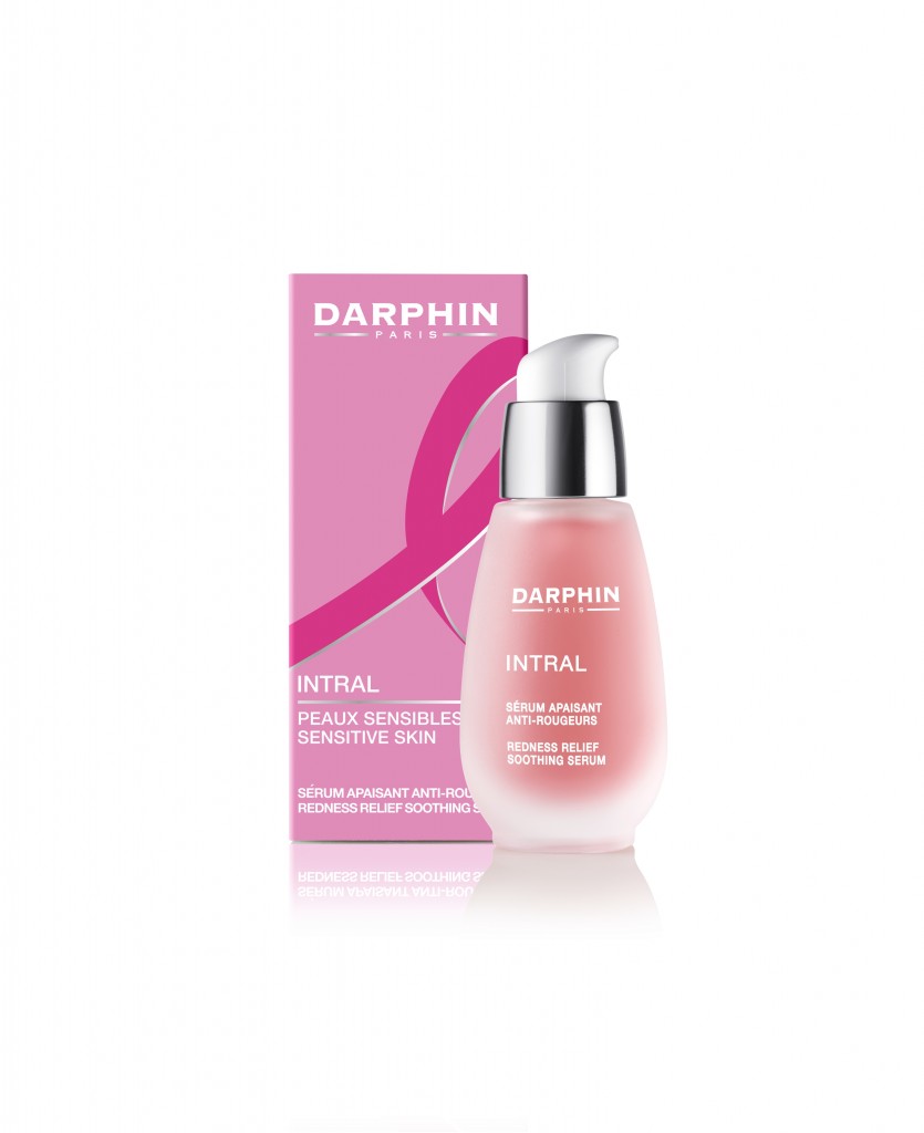 A cette occasion, le Sérum Intral Darphin sera habillé aux couleurs du ruban rose. Composé d’extraits de camomille, de pivoine et d’aubépine, ce sérum emblématique de couleur rose aide à adoucir, à hydrater la peau tout en réduisant l’apparence des rougeurs et calme instantanément les sensations d’inconfort des peaux sensibles et irritées.