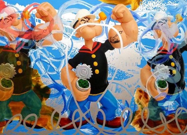 Popeye © Jeff KoonsL’oeuvre Popeye parfaitement représentative de l’univers régressif néo-pop de l’artiste américain a trouvé tout naturellement sa place sur la façade du grand magasin.