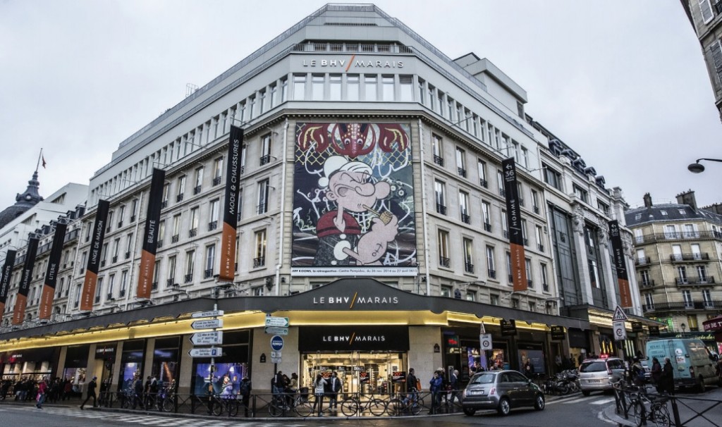 Cela fait maintenant près de 100 ans que le BHV Marais plaide pour la belle cause de l’art et inspire ses disciples. En 1914, Marcel Duchamp s’était appuyé sur un modèle acheté au BHV pour réaliser le porte-bouteille, l’un de ses premiers ready-made. Cette année, c’est au tour de Jeff Koons de s’emparer de l’aura du magasin pour afficher son art.