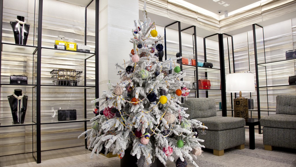 Exposition des Sapins de Noël des Créateurs jusqu’au lundi 15 décembre 2014 au Théâtre des Champs Elysées et visibles aux heures d’ouvertures dans les maisons participantes de l’Avenue Montaigne et de la rue François 1er.