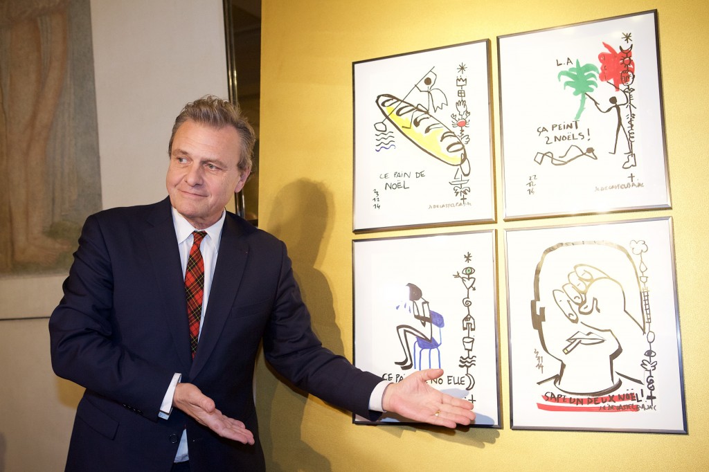 Jean-Charles de Castelbajac nous a livré un véritable exercice de style sur le sapin de Noël ! Le créateur est allé bien au delà de la symbolique habituelle pour nous livrer quatre œuvres à la symbolique forte redéfinissant Noël, fête de partage à travers le Pain de Noël, fête de famille souvent éloignée à travers « ça peint 2 Noëls » , fête de solitude également à travers « Ce pain de No Elle« , et fête célébrant aussi les difficultés du quotidien avec « Sape un deux Noël« .