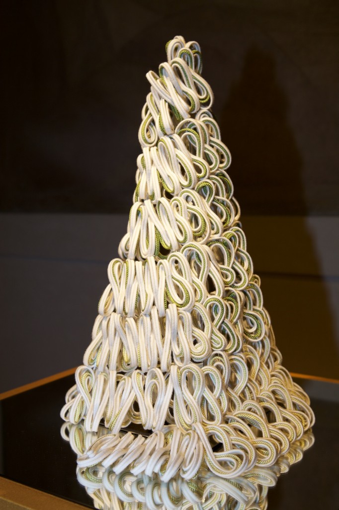 Le sapin de Rachid Khimoune est un sapin empreint d’universalité. Cette pyramide en papier relief sur bois recèle des empreintes recueillies par le sculpteur sur les rues du monde.