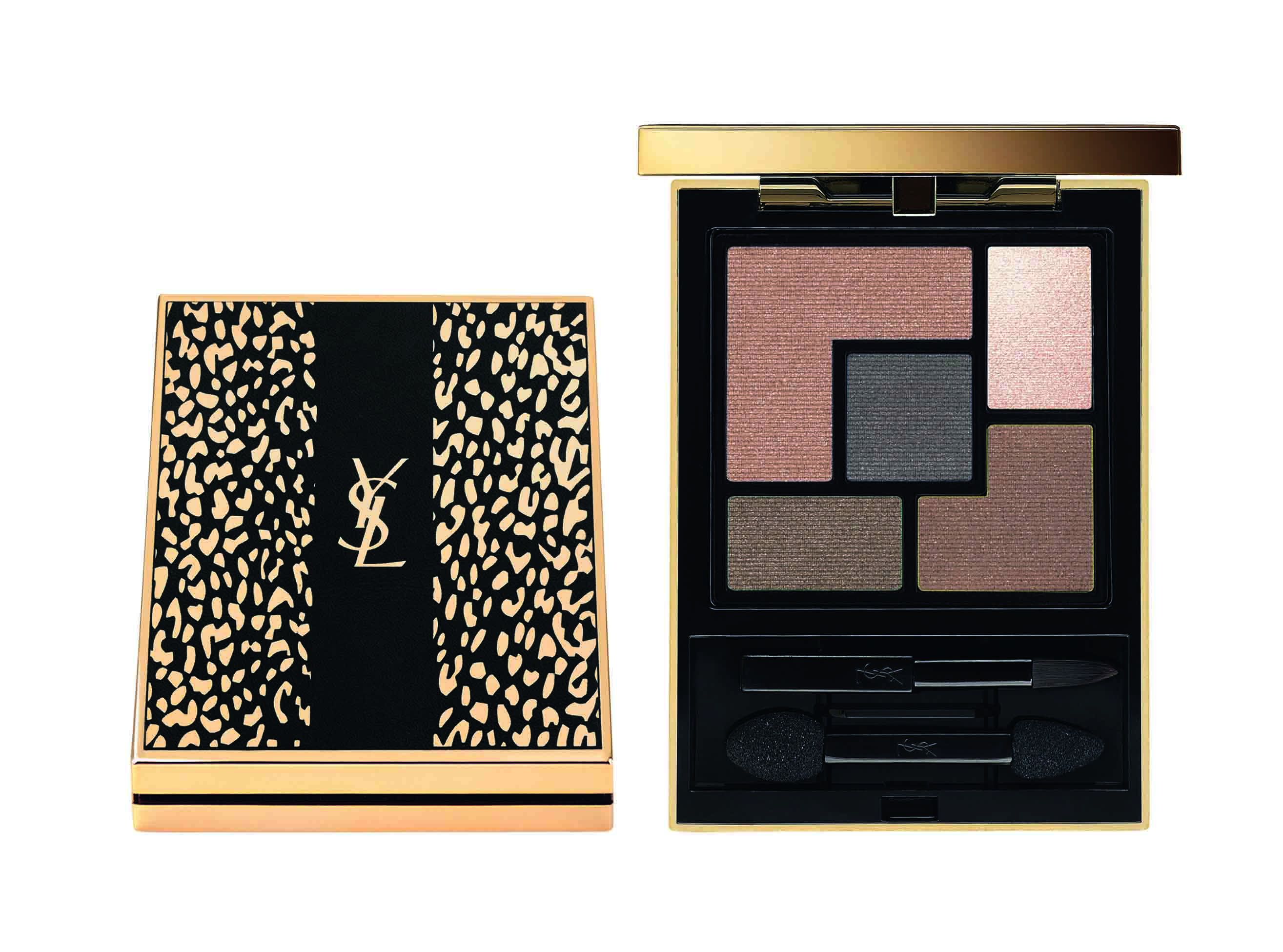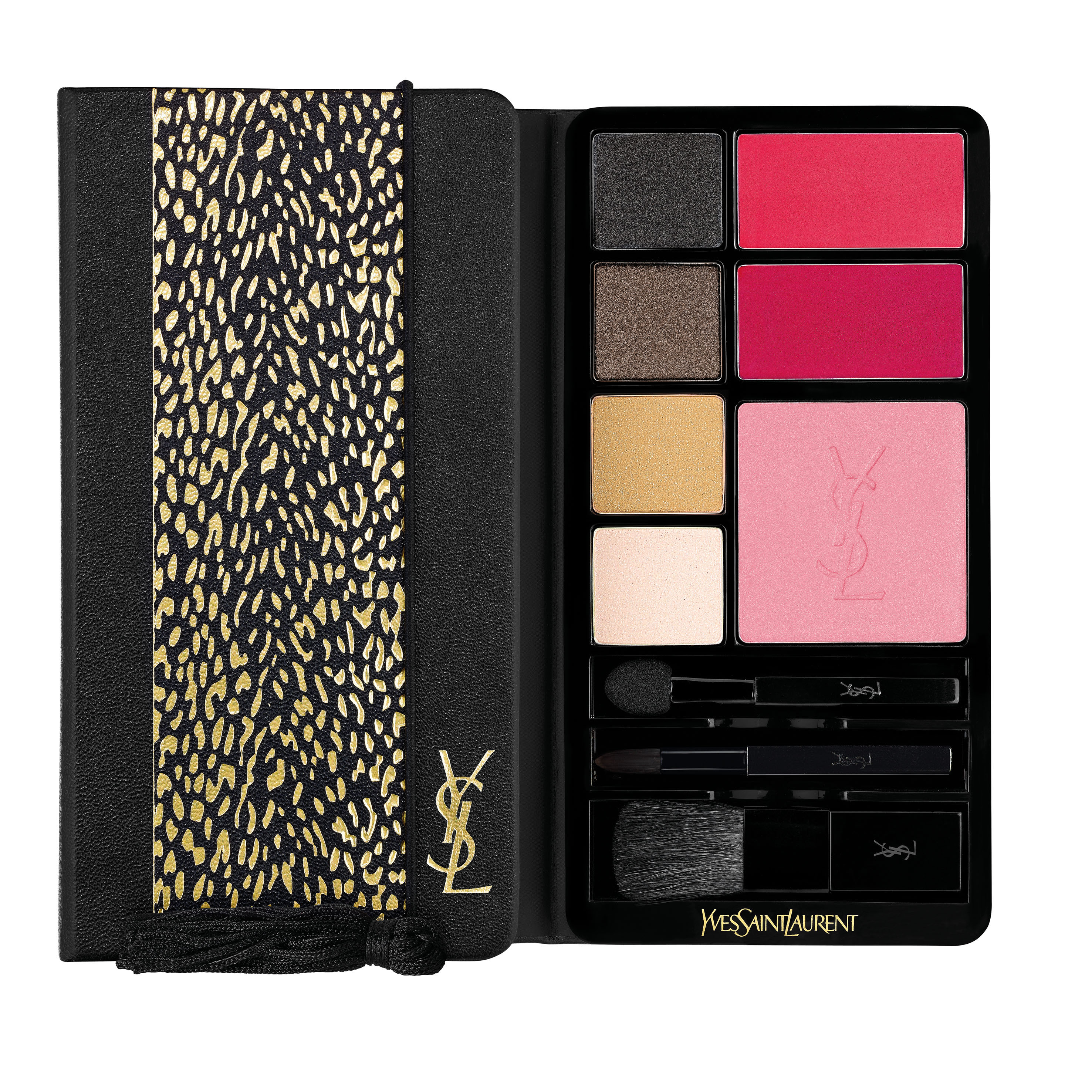 Tel un carnet de voyage, la palette collector Wild Edition renferme les essentiels d’un maquillage haute-couture. Précieux et racé, son écrin compact en cuir noir orné d’un imprimé léopard or accompagné du célèbre Cassandre renferme une harmonie de sept couleurs auxquels s’ajoutent trois pinceaux applicateurs pour les yeux, joues et lèvres.