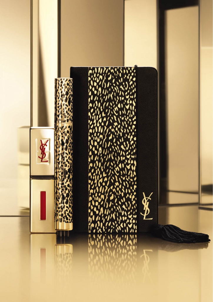 Pour les fêtes de fin d’année 2014, Yves Saint-Laurent célèbre le caractère indomptable de la femme Yves Saint-Laurent. Collection de maquillage inédite, Wildly Gold réunit trois produits collector dans une édition limitée aux finitions couture parée d’imprimé léopard et de touches dorées de circonstance.