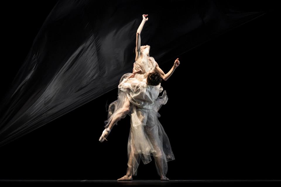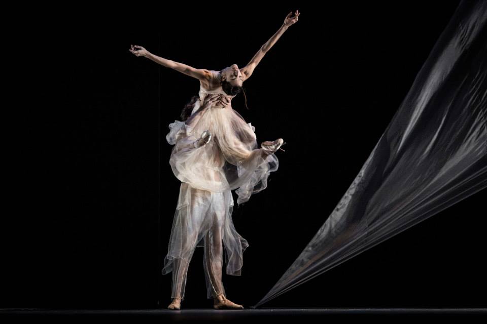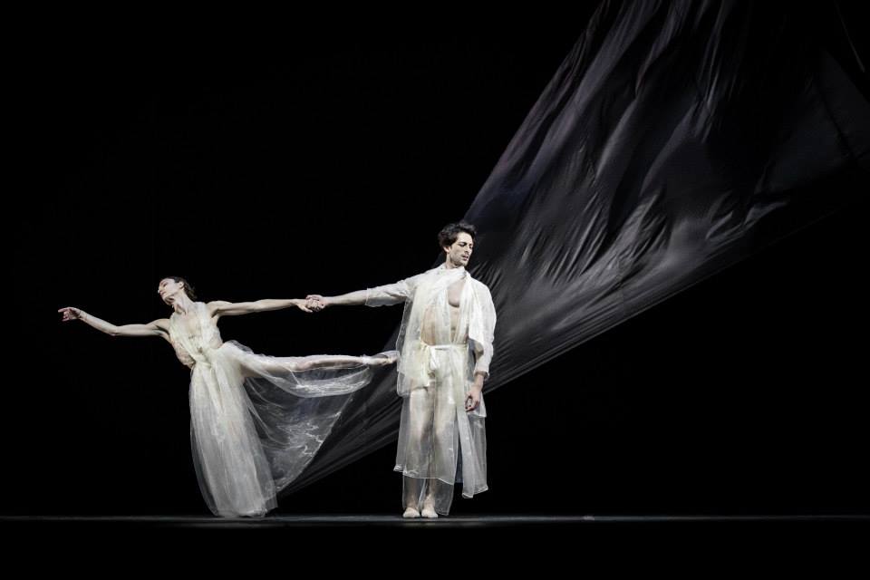 Aériens et délicats, les costumes font corps avec les personnages incarnés par les danseurs étoiles de l’Opéra de Paris Dorothée Gilbert Mathieu Ganio dans un duo chorégraphié par Giorgio Mancini sur l’œuvre originale de Wagner. Le mouvement des danseurs d’une extrême précision n’est jamais entravé.