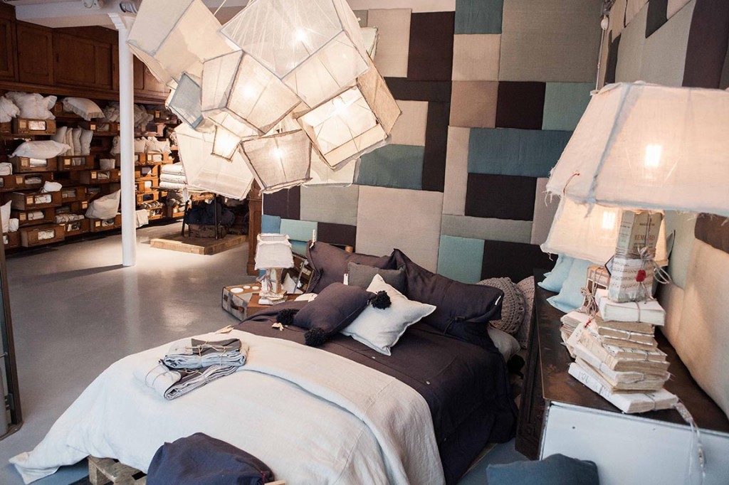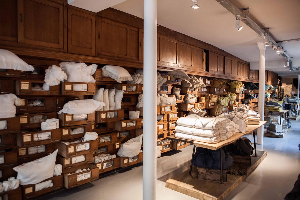 Très vite, le textile de maison séduit. Le lin aux tonalités naturelles et chaleureuses se décline dans des collections dédiées aux arts de la table ou au linge de maison. Draps en lin, plaids molletonnés et coussins en laine douillets finissent de nous attirer irrésistiblement.