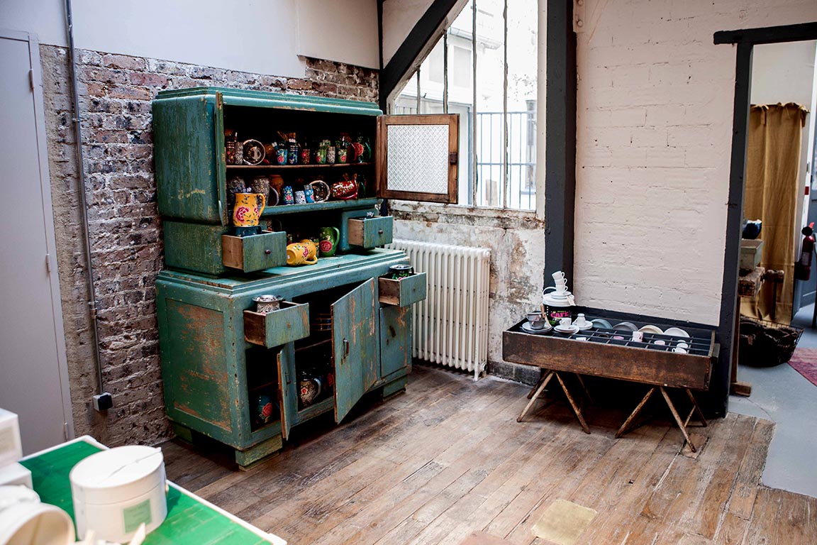 Nichée dans une petite rue du quartier Oberkampf à quelques pas de République, une ancienne usine de caoutchouc de 700 mètres carrés allait leur permettre de réaliser leur rêve. Séduits par ce vaste espace complètement atypique et évocateur, Valentina Muggia et Giuliano Di Paolo ont su y créer une ambiance douce et accueillante pour présenter leur collection.