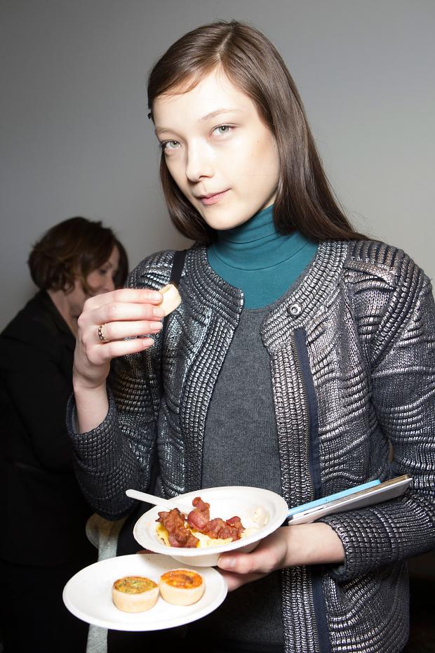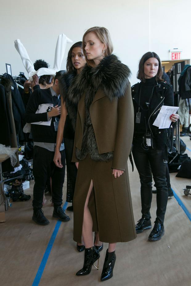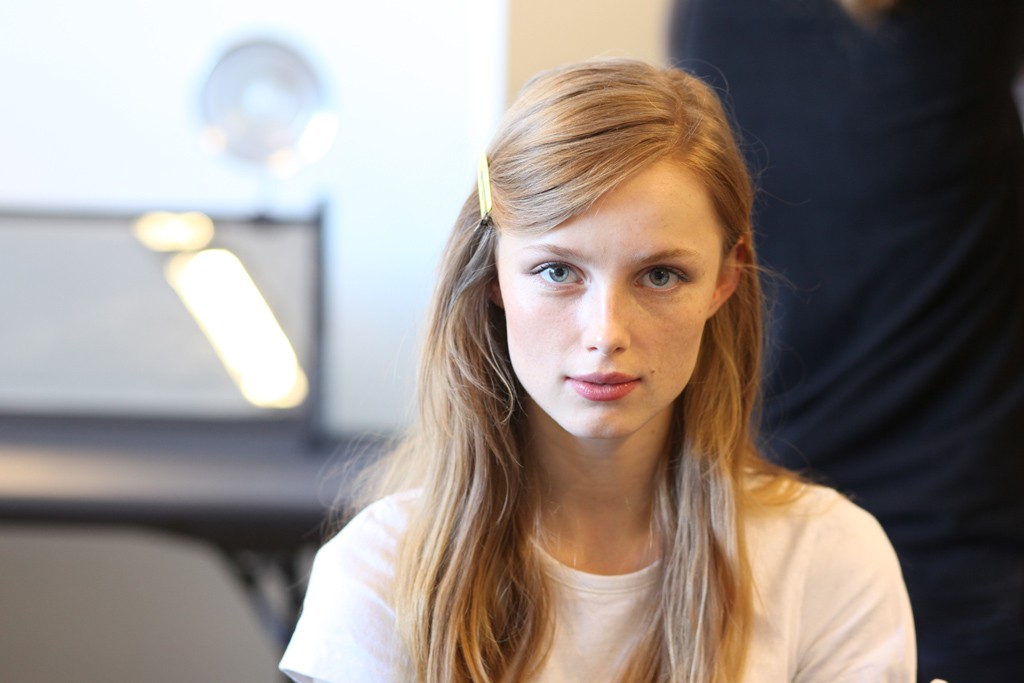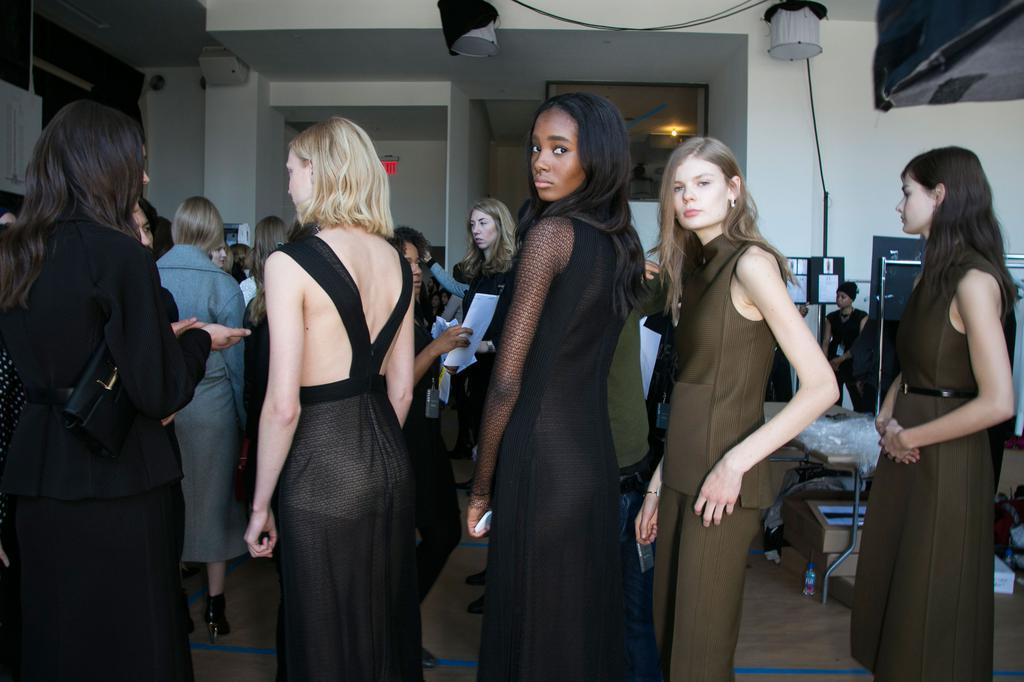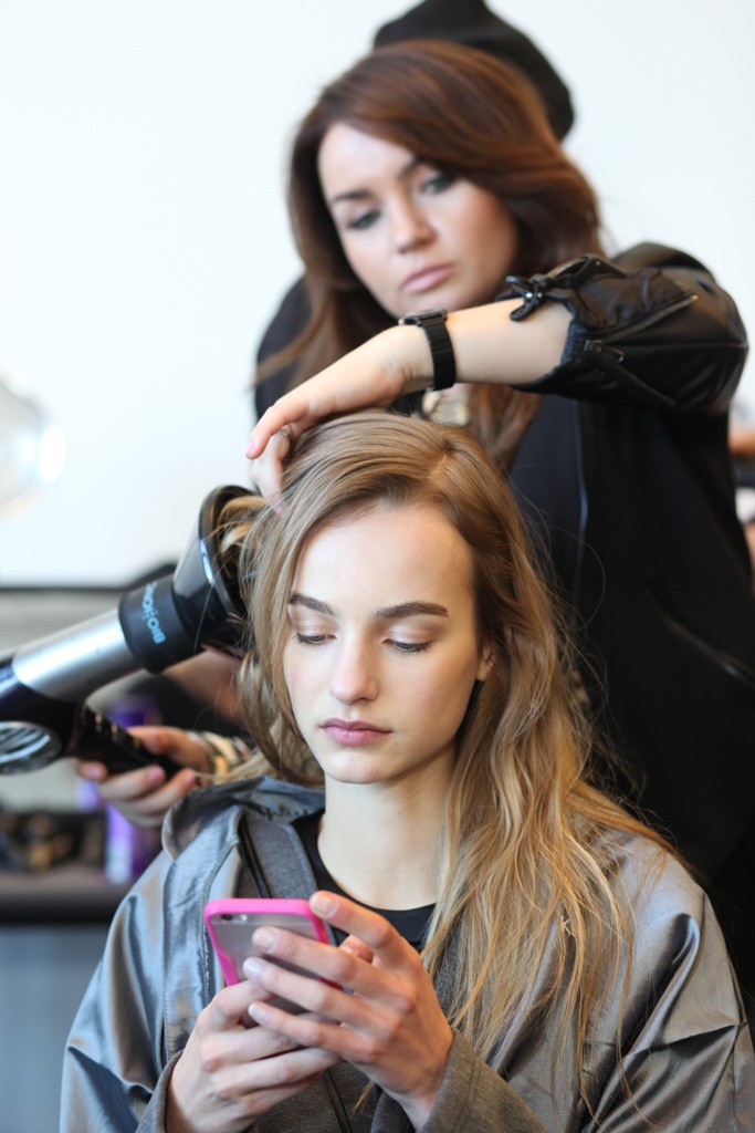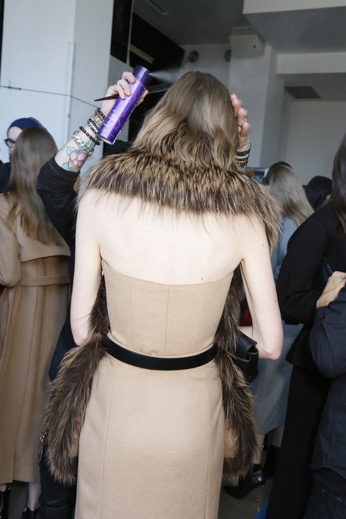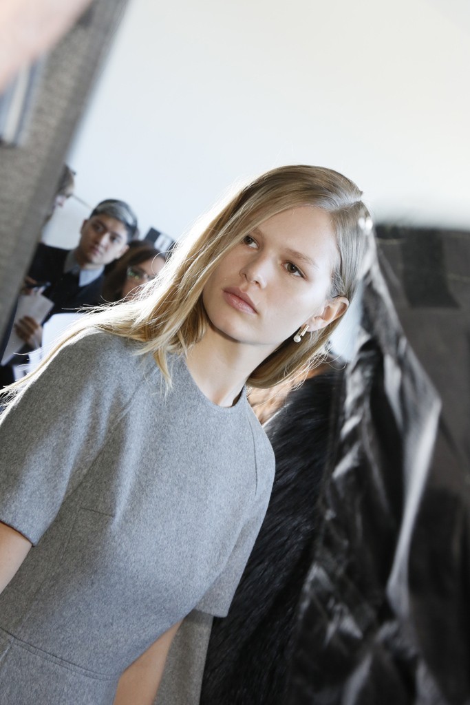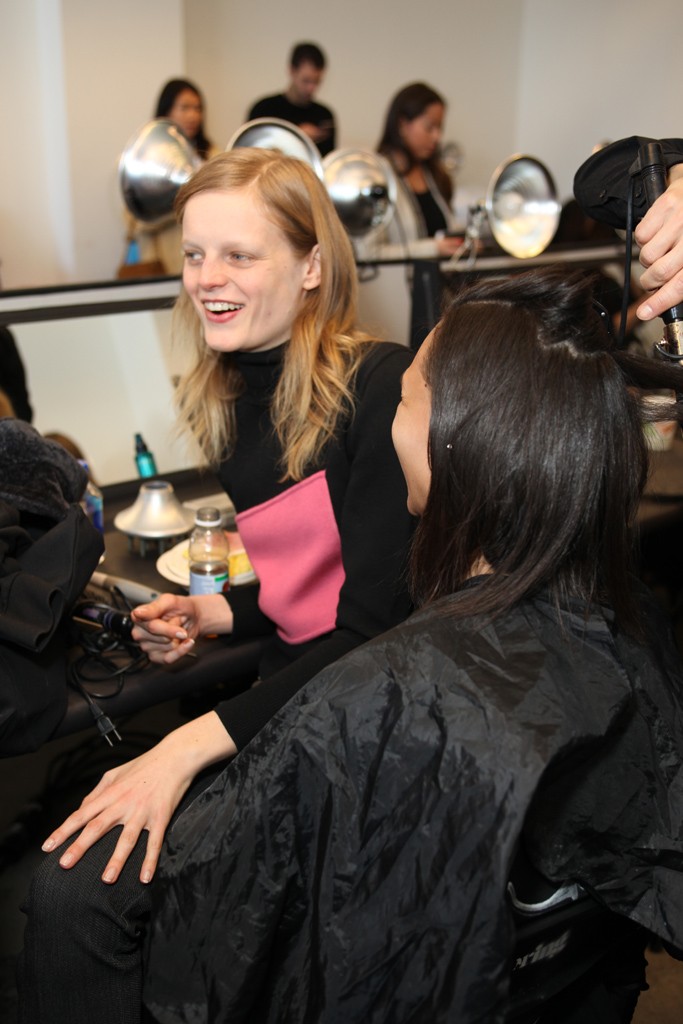 Et quelques minutes avant le début du défilé, coiffeurs et maquilleurs s’affairent autour des mannequins pour effectuer cette mise en beauté naturelle, le cheveu dégagé ondulant légèrement et le maquillage à peine perceptible, signes que cette femme Jason Wu, pleinement dans son époque n’est pas une femme d’artifices.