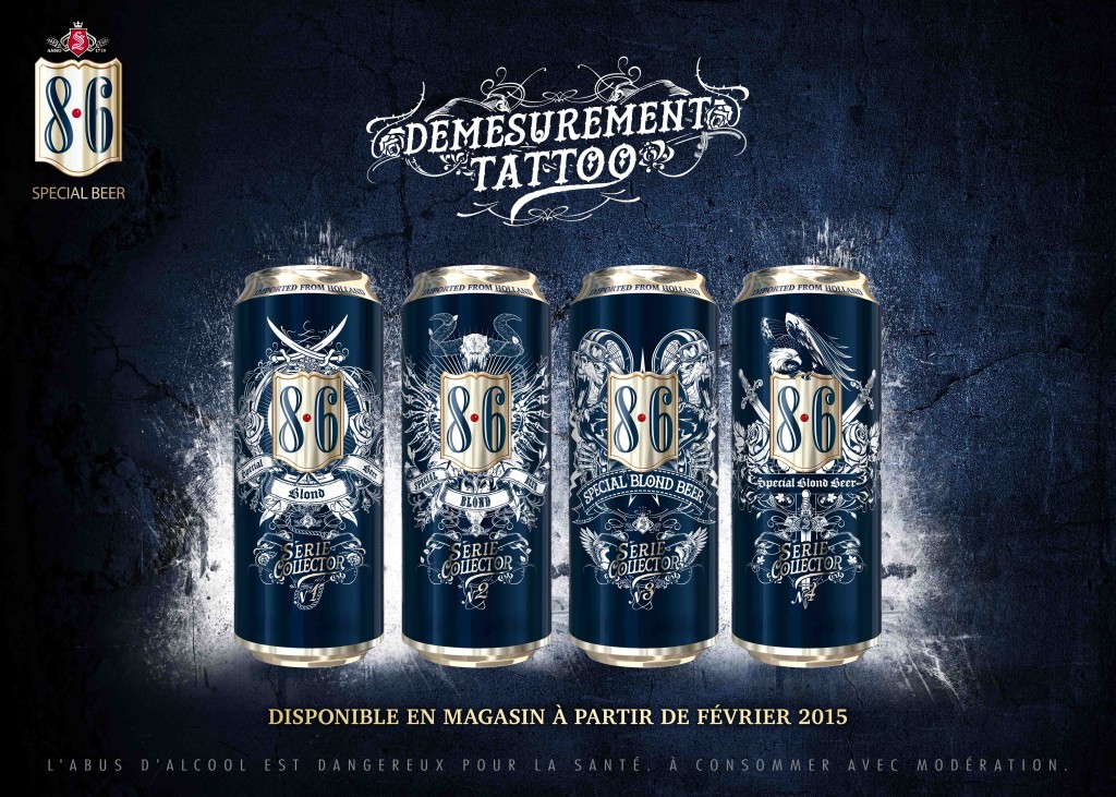 Mais l’engagement de 8.6 dans cet univers artistique ne s’arrête pas là puisque la marque de bière a également développé une série collector exclusive composée de 4 boîtes 8.6 Original 50 cl au design 100% tattoo, commercialisée depuis début février.