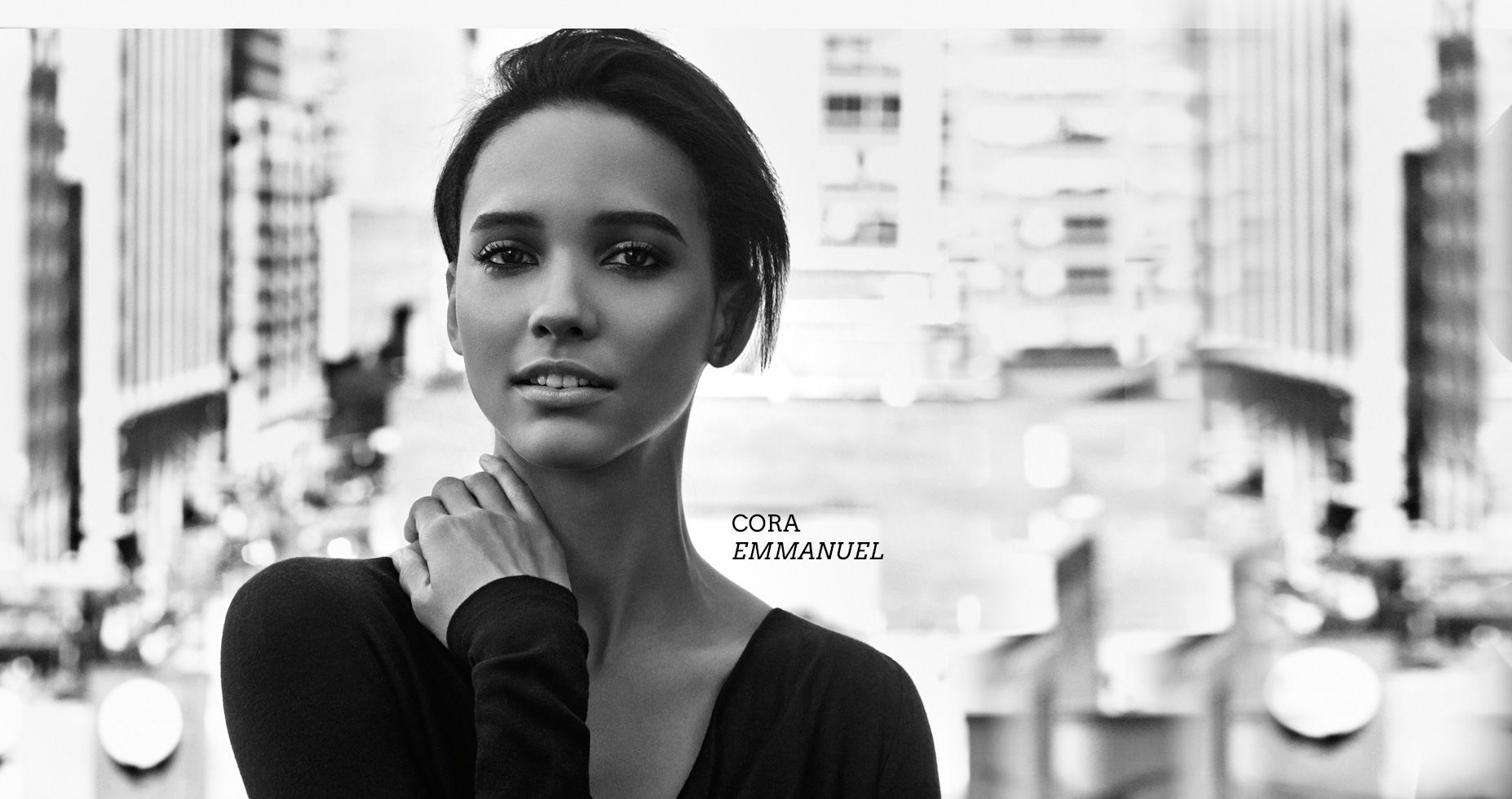 Née en Martinique comme Sigrid Agren, Cora Emmanuel est repérée à l’âge de seize ans lors d’un casting Elite Model Look organisé sur l’île en 2008.