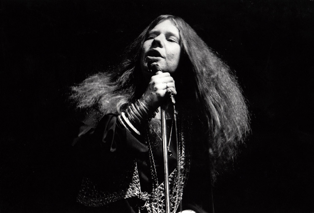 JANIS JOPLIN Concert à l’Olympia, à Paris, le 14 avril 1969. Épreuve argentique d’époque (16× 23,5 cm) de Christian ROSE (né en 1946). Tampon et annotations du photographe au dos.Rock Collection regroupe des clichés capturés pour la plupart par les grands photographes issus de la presse musicale française.