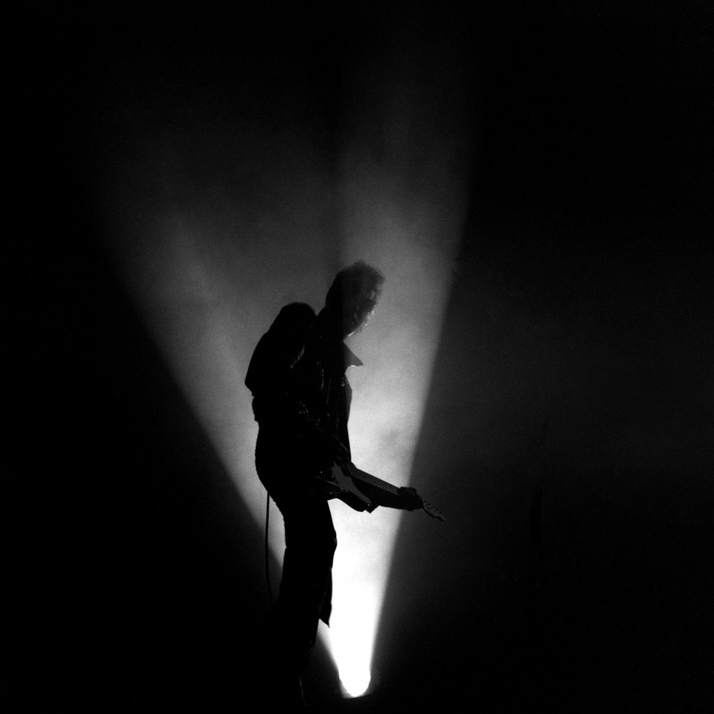 ALAIN BASHUNG, 1987 Épreuve jet d’encre sur papier cartoline (40×40 cm, marges comprises) de Richard SCHROEDER (né en 1953), numérotée 3/12. Annotations et signature du photographe au dos.Et pourtant ce ne sera pas celle qui captera notre regard. Non plus loin, l’image précieuse et fugace d’un Bashung dans l’ombre comme sortant d’un puits de lumière saura nous rappeler que « La nuit, il ment« .