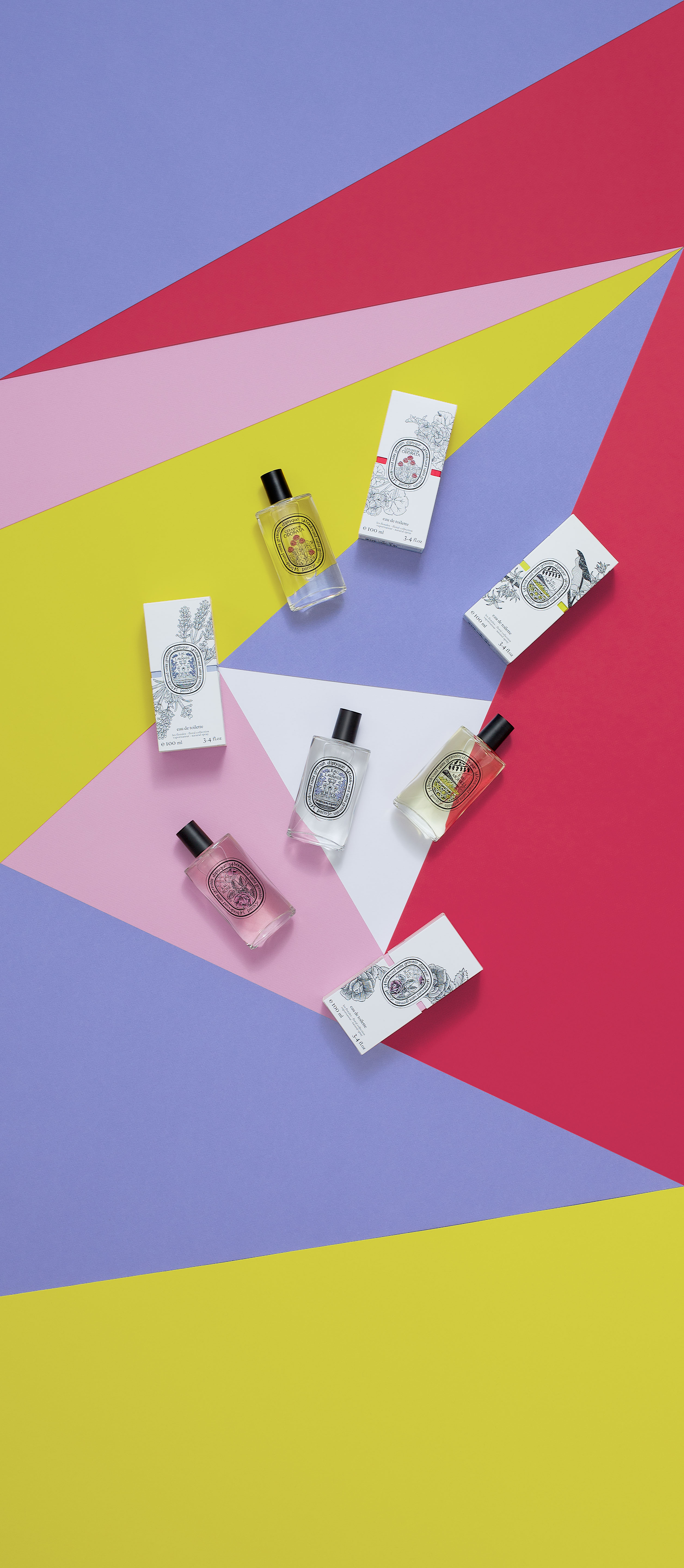 Pour cet été et jusqu’en août, les Eaux parfumées se parent d’un fourreau coloré origami reprenant les couleurs associées à chaque Eau.