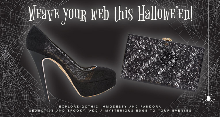 Comme chaque année, Charlotte Olympia célèbre Halloween avec une collection dédiée. Qui mieux que la marque à la toile d’araignée pour nous fournir des accessoires dignes de ce nom en cette soirée si particulière !