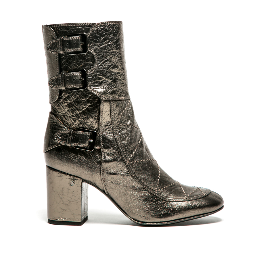 Laurence Dacade a matelassé pour nous le plus souple des métaux. Aux reflets Coca-Cola, pour les filles qui brillent sans bling, ces boots seront l’armure anti-grisaille ultime.