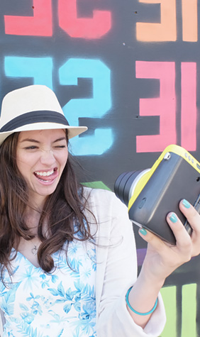 Vérifiez le cadrage grâce au petit miroir en façade situé à côté de l’objectif, appuyez sur le déclencheur et récupérez votre photographie imprimée !