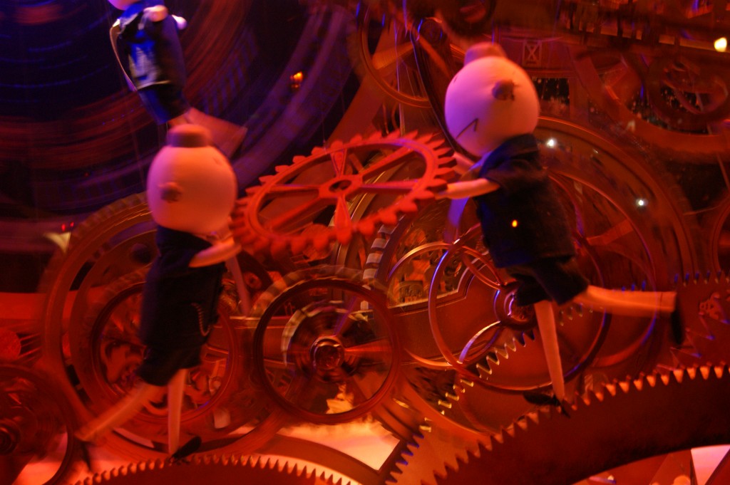 Sous les éclats de rire, la Fée Printemps entraîne dans une farandole virevoltante ses joyeux amis émerveillés par ce féerique cadeau dans onze vitrines entièrement animées mises en scène avec la complicité de Philippe Découflé et imaginées avec la complicité des prestigieux partenaires du grand magasin.