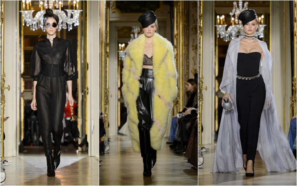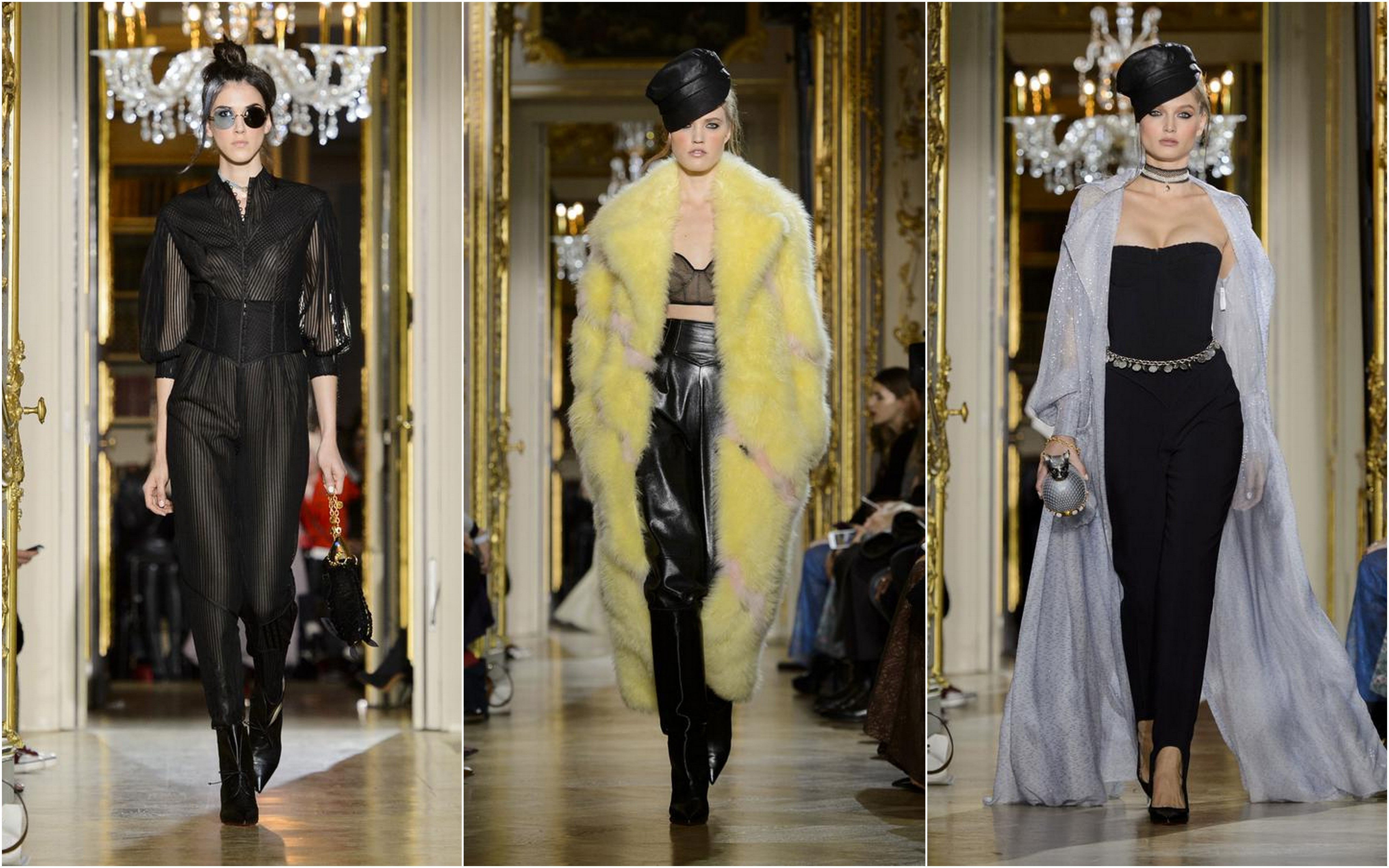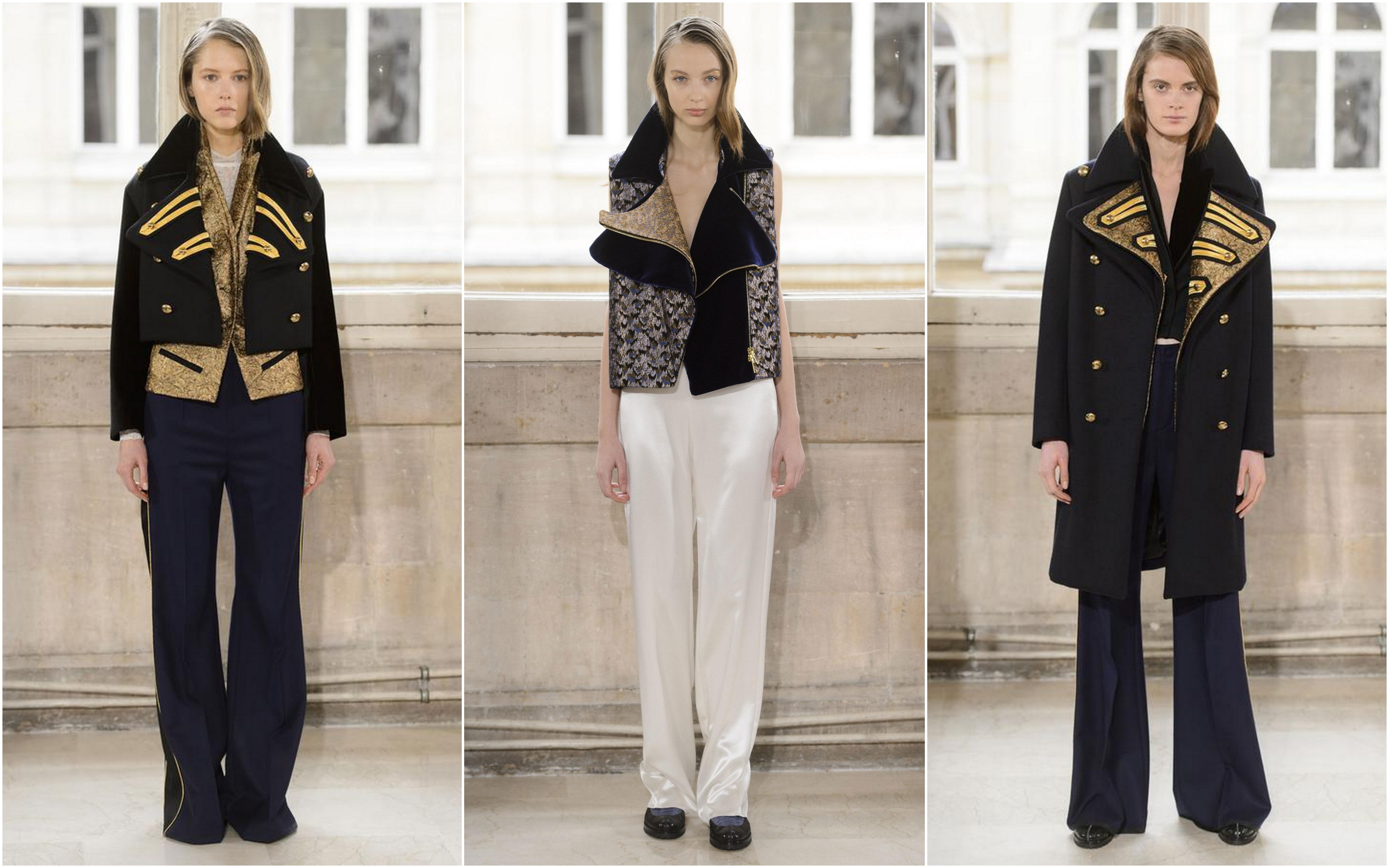 Virtuose de la coupe et du tailoring emprunté au vestiaire masculin, Bouchra Jarrar enveloppe ses muses dans de précieux manteaux d’officiers, dont les riches passementeries et le brocart doré s’adoucissent au contact de la fourrure fauve ou crème.