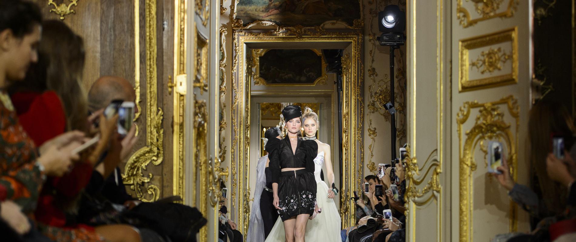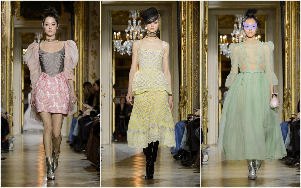 Robes de jeunes premières dévergondées, corsets pastels et jupons de dentelles, épaules aussi larges que l’esprit de celles qui les portent, satin irisé, tons acidulés et volume poussé à son maximum…
