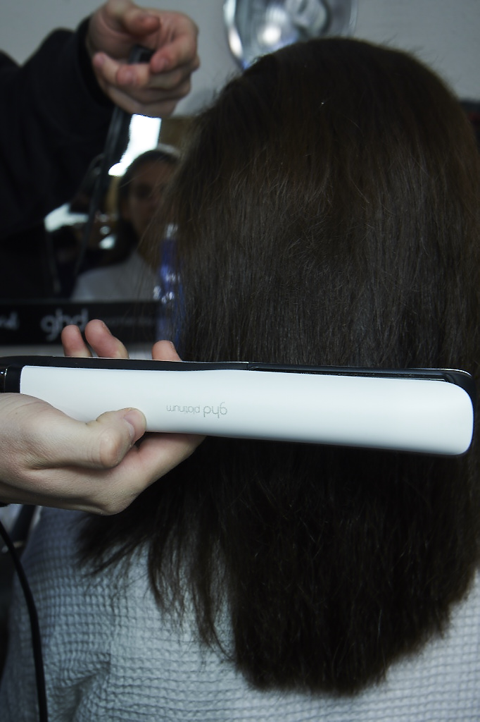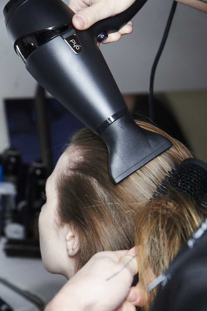 En utilisant le sèche-cheveux ghd air® (144€) et le bout de ses doigts, il a créé un look lisse, sans frisottis en coiffant les cheveux des modèles vers l’arrière pour dégager leurs visages.