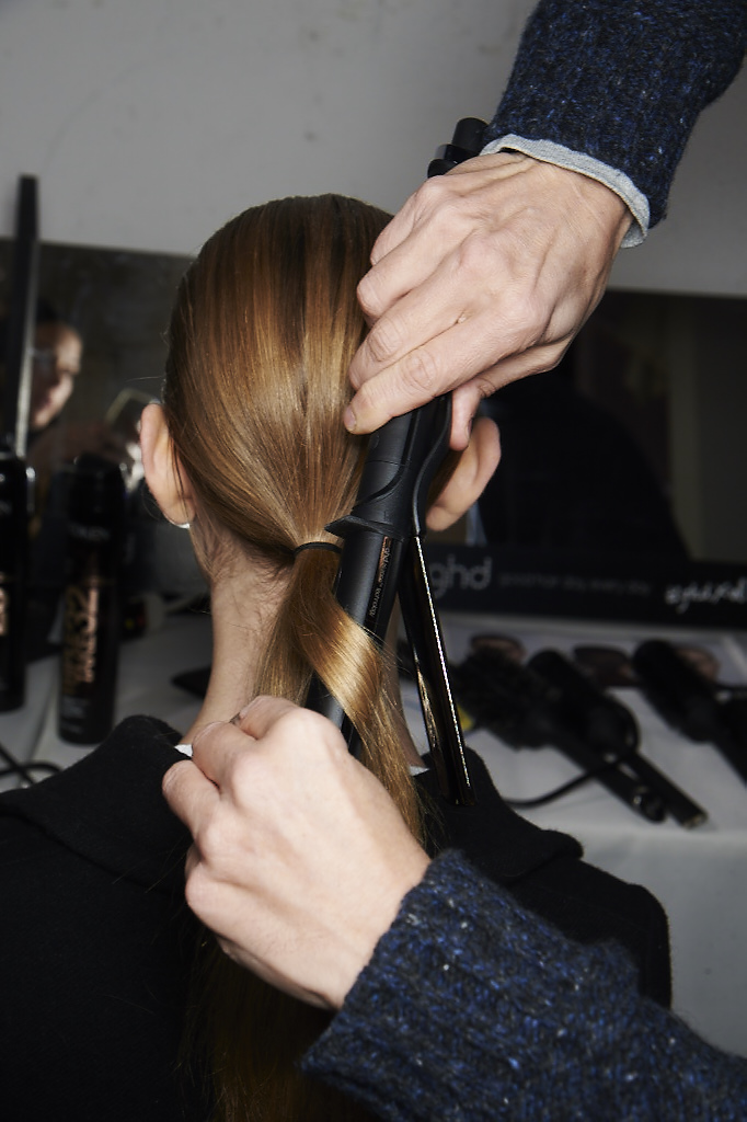 Pour donner à la queue de cheval un mouvement minimaliste et léger, Guido a “courbé” quelques mèches autour du boucleur ghd curve® soft curl tong (179€).