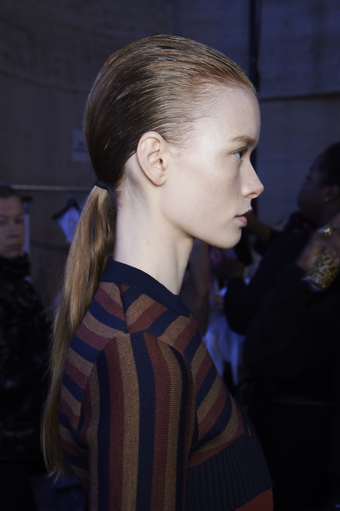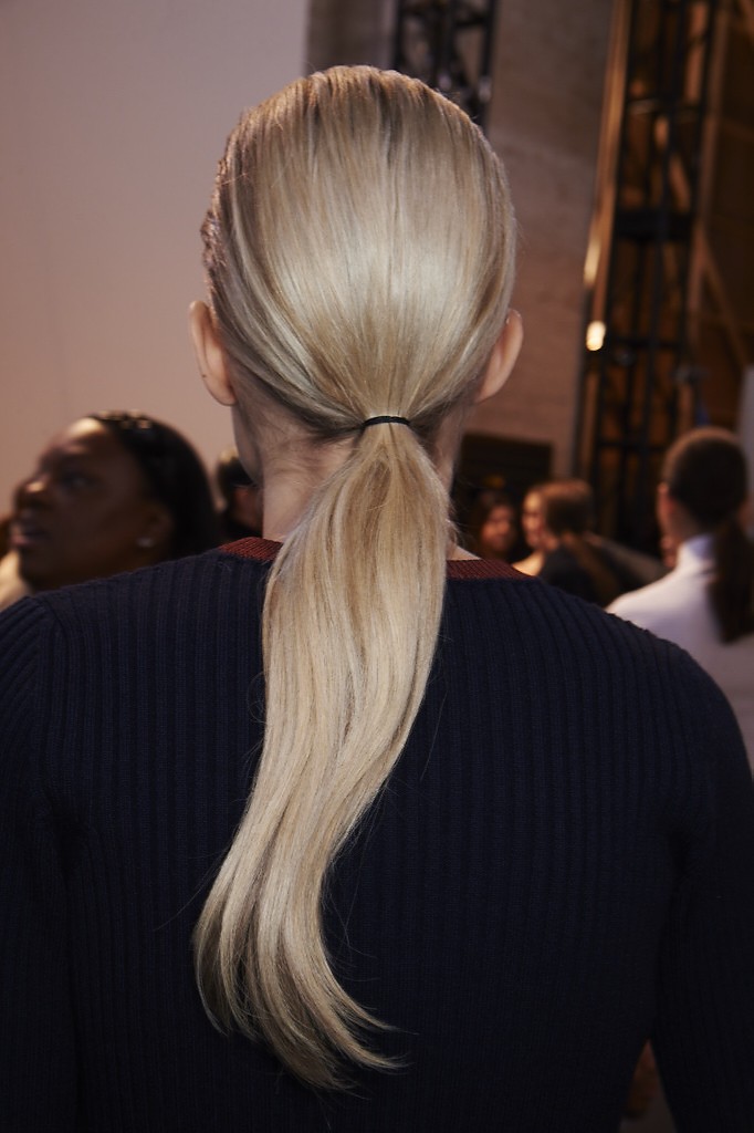 Comme un écho à cette nouvelle femme Victoria Beckham, le coiffeur international Guido Palau a créé une queue de cheval à la fois minimaliste et à la double texture en partenariat avec la marque de coiffage ghd.