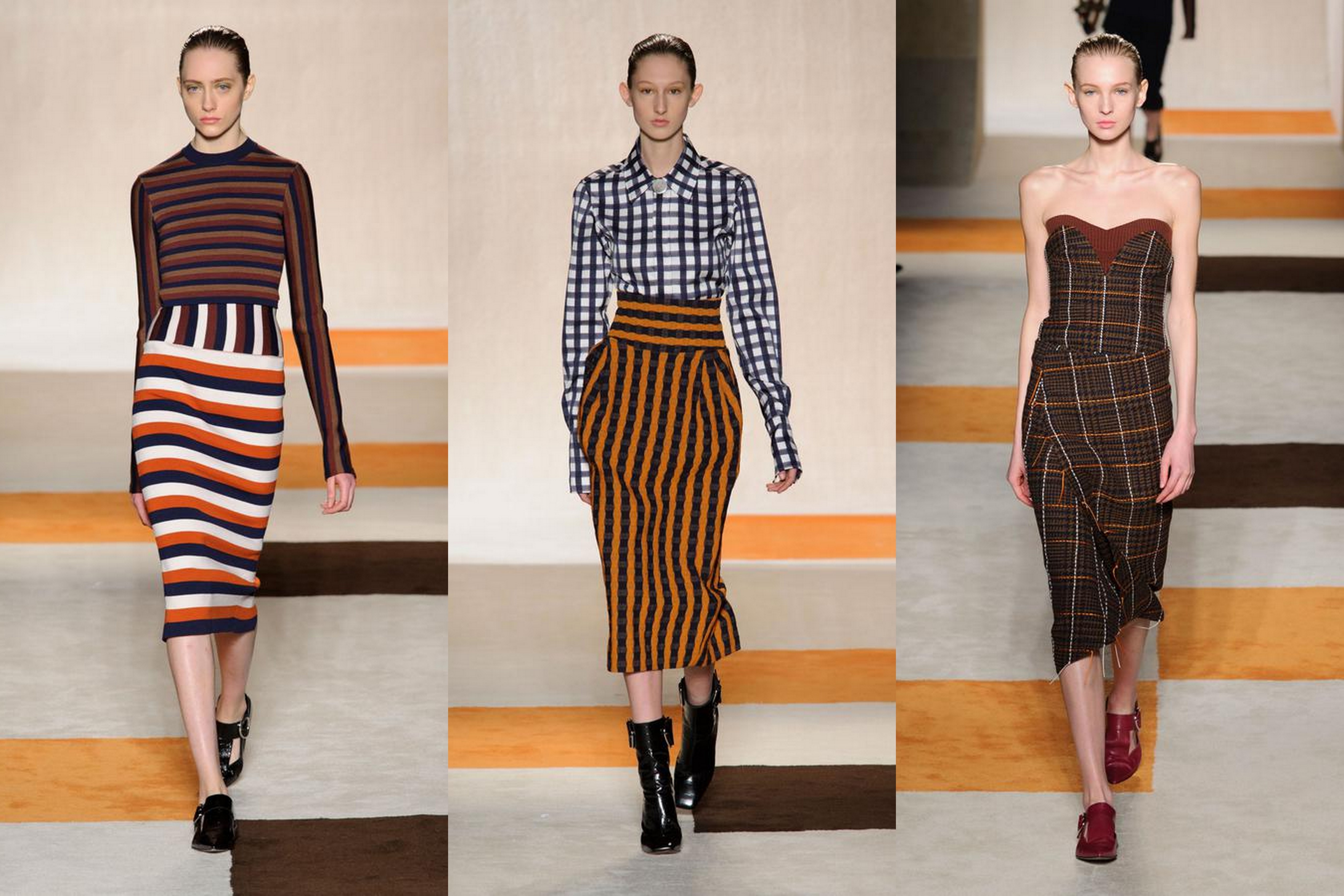 Déjà présent la saison dernière, l’imprimé se renforce l’automne prochain à travers un mix and match des plus percutants. Tartan, pied de coq et rayures se mêlent et se confondent brillamment et apportent de la fraîcheur à une silhouette minimaliste et raffinée, multipliant les détails.