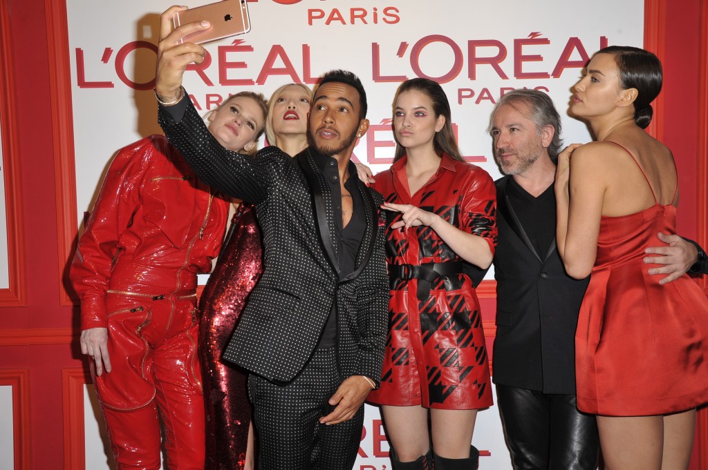 Le triple champion du monde de Formule 1 Lewis Hamilton, nouvel ambassadeur de la gamme L’Oréal Men, et Lucky Blue Smith les accompagnaient. Simon Buret, Chris Brown, Gabriel Kane Day Lewis et Bradley Cooper étaient également de la partie.