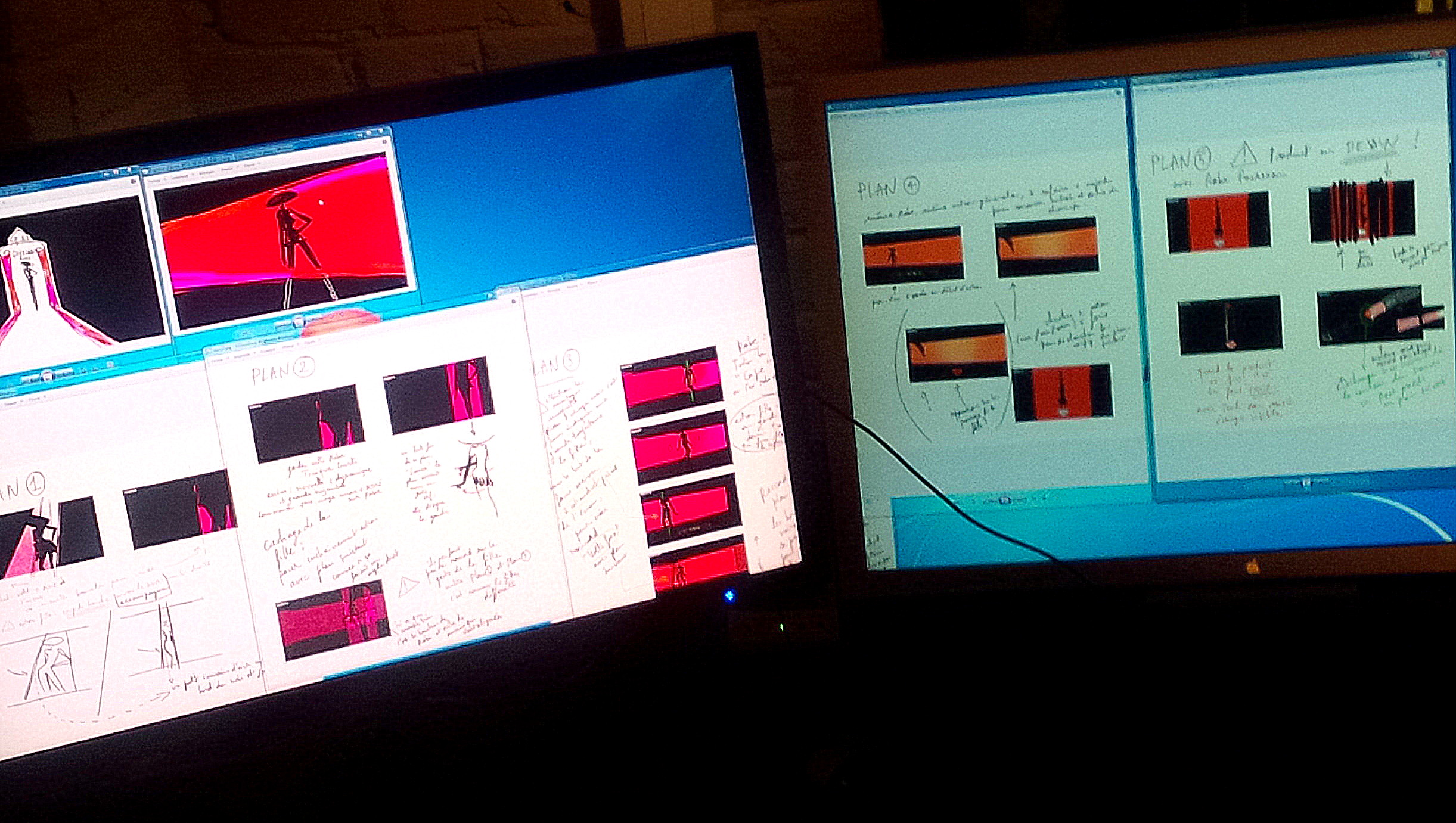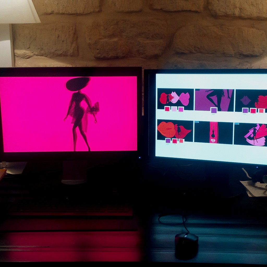Alors que le rez-de-chaussée est consacré aux inspirations et à la création, le sous-sol du studio est consacré à la réalisation pure. C’est ici que l’égérie de La Petite Robe Noire a pris vie grâce aux différentes équipes du studio créatif. Tout commence par un story-board maîtrisé et annoté.