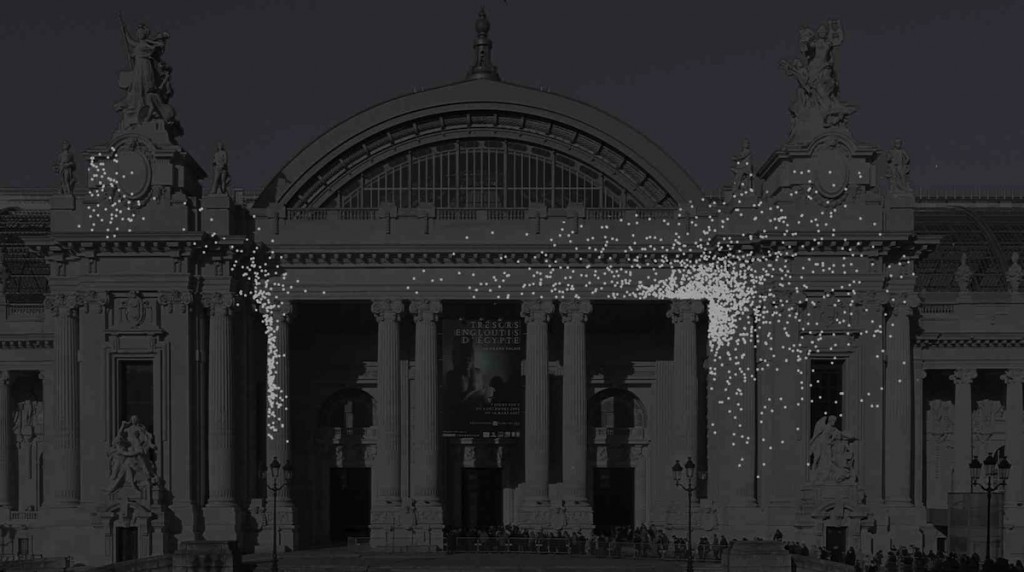 Par ailleurs, le collectif suisse ENCOR studio fait vibrer avec Duel la façade Beaux Arts du bâtiment mythique tandis que le collectif azéri Hypnotica privilégie une approche organique de l’architecture avec The Breat. Enfin, avec Façade Life, le français Antoine Schmitt inonde la façade du Grand Palais d’une pluie de pixels générée par algorithmes.
