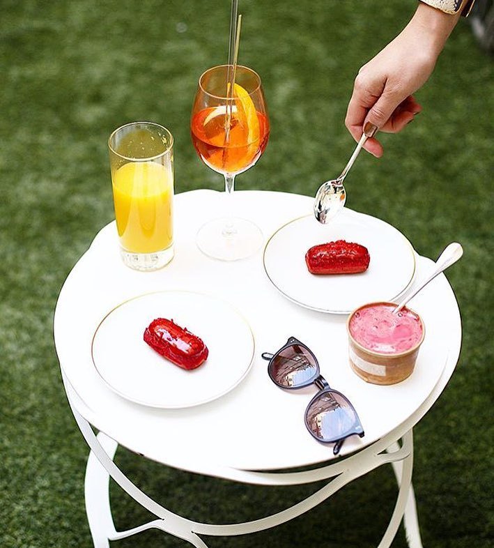 Baptisée la Plage, cette oasis en pleine ville vous offre une sélection de boissons et de douceurs salées et sucrées pour combler les petites faims estivales comme les glaces detox Nubio ou le fameux éclair Chatelles fraise/pistache.