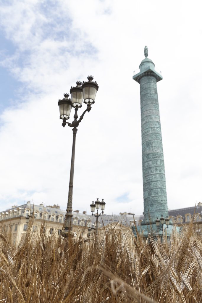 Le contraste est pourtant saisissant entre cette place symbole du luxe à la française et de la Haute-Joaillerie et la simplicité du blé. L’espace d’un instant suspendu dans le temps, la minéralité laisse la place au végétal et la ville s’incline devant la nature.
