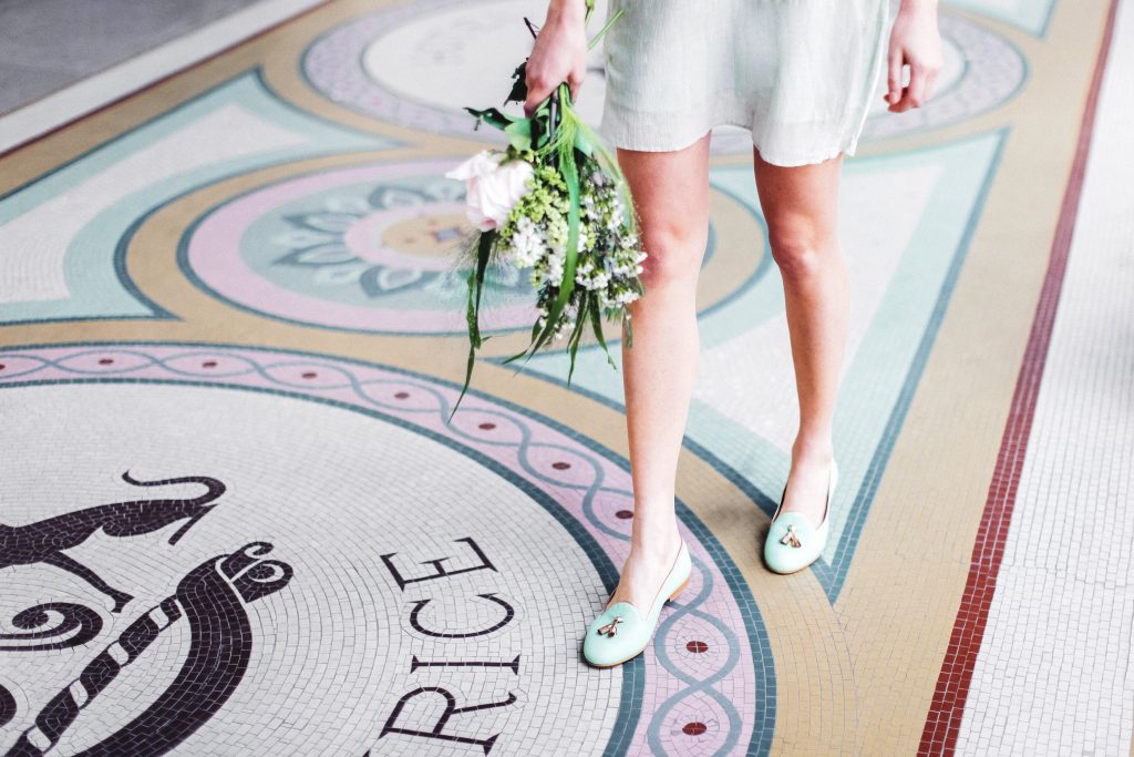 Pour célébrer ces différentes valeurs communes, les stylistes de Chatelles ont imaginé un modèle inédit ultra-chic, aux couleurs du Palace. Entièrement confectionné à la main dans un magnifique cuir italien vert d’eau, le slipper Meurice est rehaussé d’un liseré d’un cuir or rose, pour avoir de l’allure à plat en toute occasion !