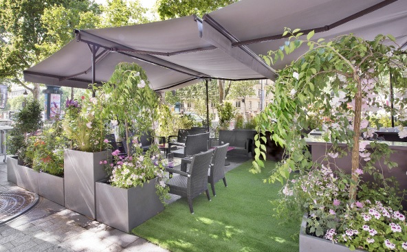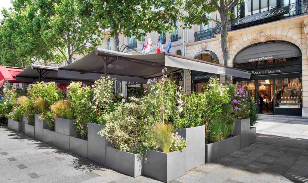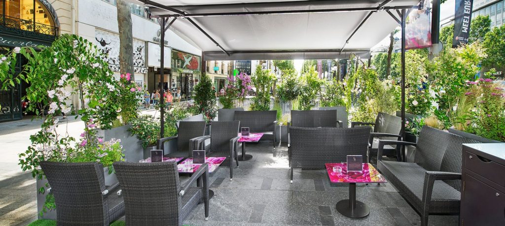 On ne résiste pas à la tentation de s’octroyer une petite pause bien méritée, confortablement installé à l’ombre des parasols… Qu’il s’agisse d’une simple pause dans une journée bien remplie ou d’un déjeuner sur l’avenue la plus emblématique de France, cette terrasse au milieu des plantes aromatiques se veut une pause fraîcheur, typique de l’art de vivre à la française.