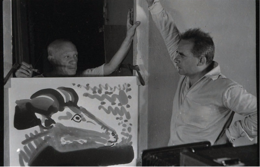 Picasso – Clouzot Lot 346Le projet d’une collaboration entre Pablo Picasso et Henri-Georges Clouzot est évoqué pour la première fois en 1952, alors que les deux hommes sont désormais voisins, Picasso vivant à Vallauris et Clouzot, auréolé du succès du film Salaire de la peur, à Saint-Paul.
