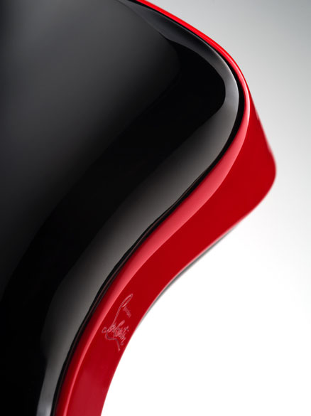 Conçue au sein de l’atelier parisien du créateur, Shoepeaks a d’abord été sculptée dans le bois en utilisant la forme qui sert à réaliser l’escarpin So Kate, reprenant ainsi le processus artisanal développé pour la création de ces souliers. Tout en elle renvoie à l’univers des souliers à la fameuse semelle rouge.