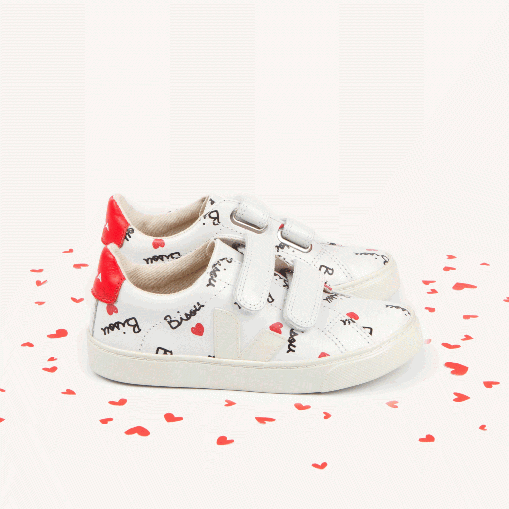 Cette collaboration toute en douceur se décline en femme et enfant en trois modèles d’Esplar : adulte version lacets, junior (80€) et enfant (75€) en version à scratch. Et nous on est fan de ces bisous posés nos pieds !