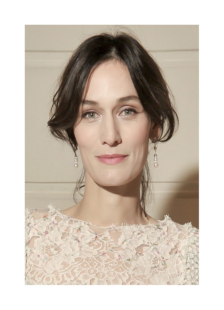 L’actrice Française Clotilde HESME portait des boucles d’oreilles Perle Couture en or blanc 18K et diamants et un bracelet Plume en or gris 18K et diamants CHANEL Joaillerie pour sublimer le pantalon et le top Chanel issus de la collection Haute Couture Printemps-Eté 2016.