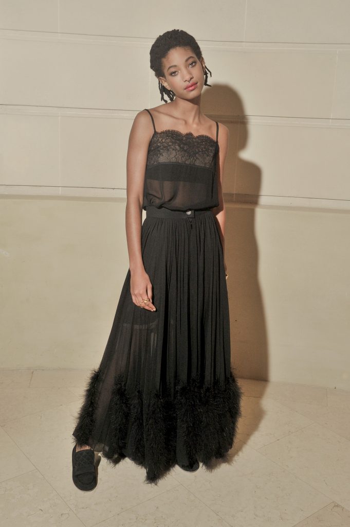 La jeune Willow SMITH portait une bague Lion Arty en or jaune 18K, des bagues Coco Crush en or jaune et beige et des bracelets Coco Crush en or jaune 18K Chanel Joaillerie. Elle portait également un top et une jupe Chanel de la collection prêt à porter Printemps-Eté 2017.